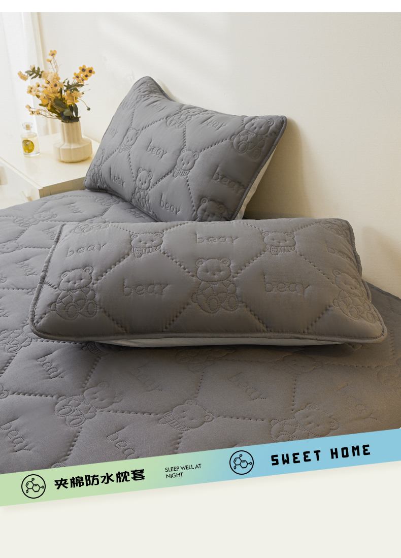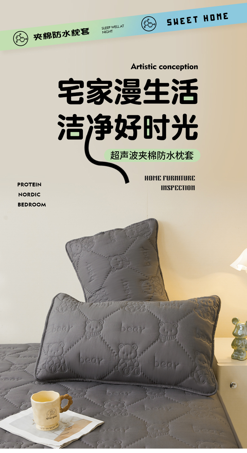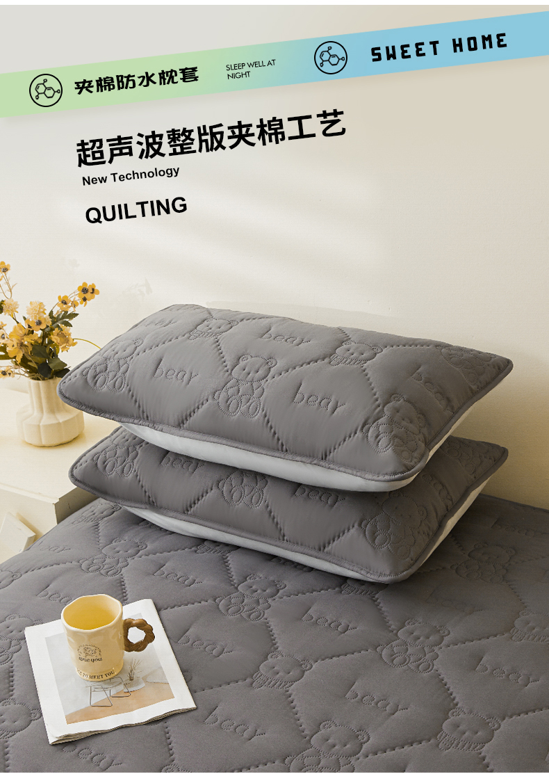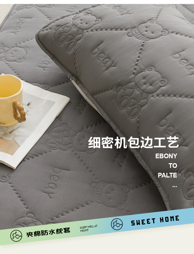 • 91家纺网 家纺一手货源 找家纺 LIFE.丽芙 2025新款磨毛超声波夹棉防水枕套机包边款 小熊防水夹棉枕套-高级灰