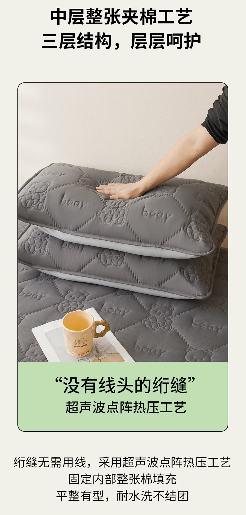 当前位置: 91家纺网 > 商品网购 > 床上用品 > 枕套 > LIFE.丽芙 2025新款磨毛超声波夹棉防水枕套机包边款 小熊防水夹棉枕套-高级灰