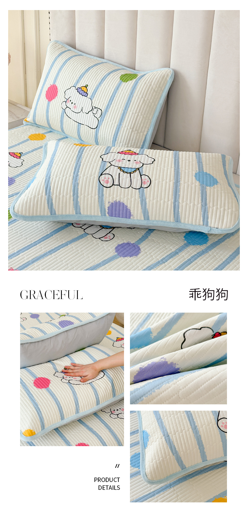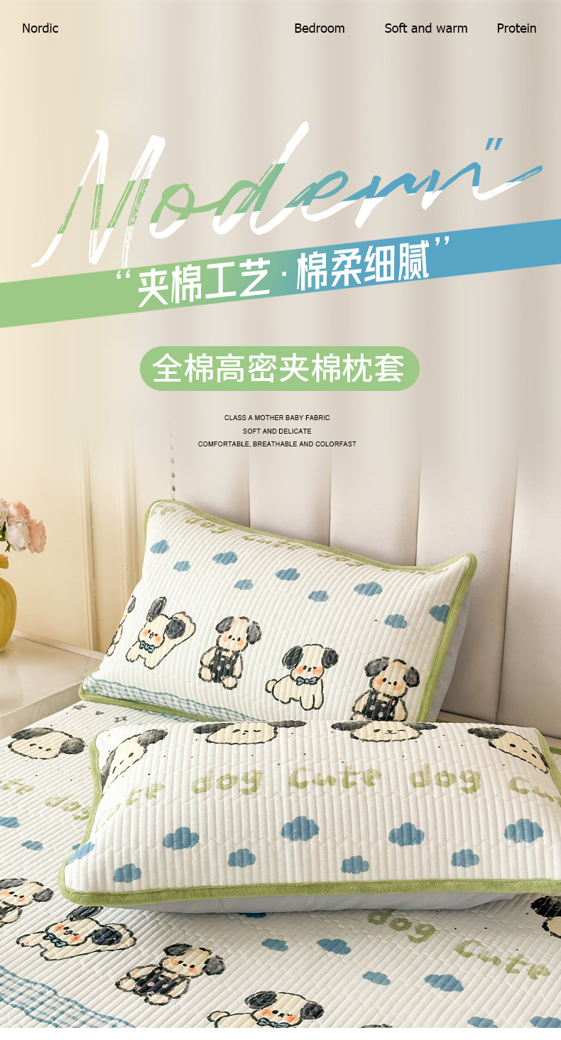 商品名称:LIFE.丽芙 2025新款A类全棉夹棉包边枕套 调皮狗狗