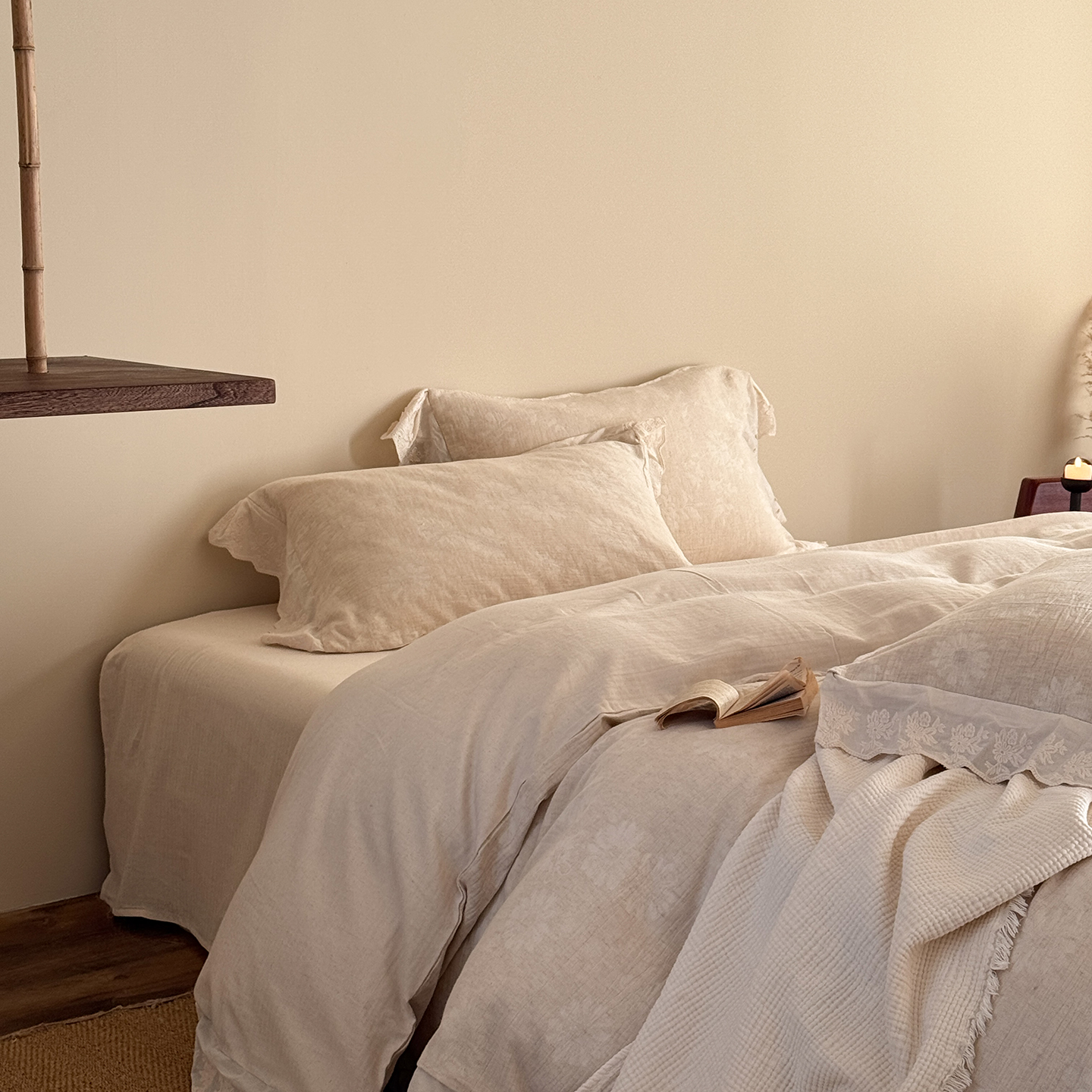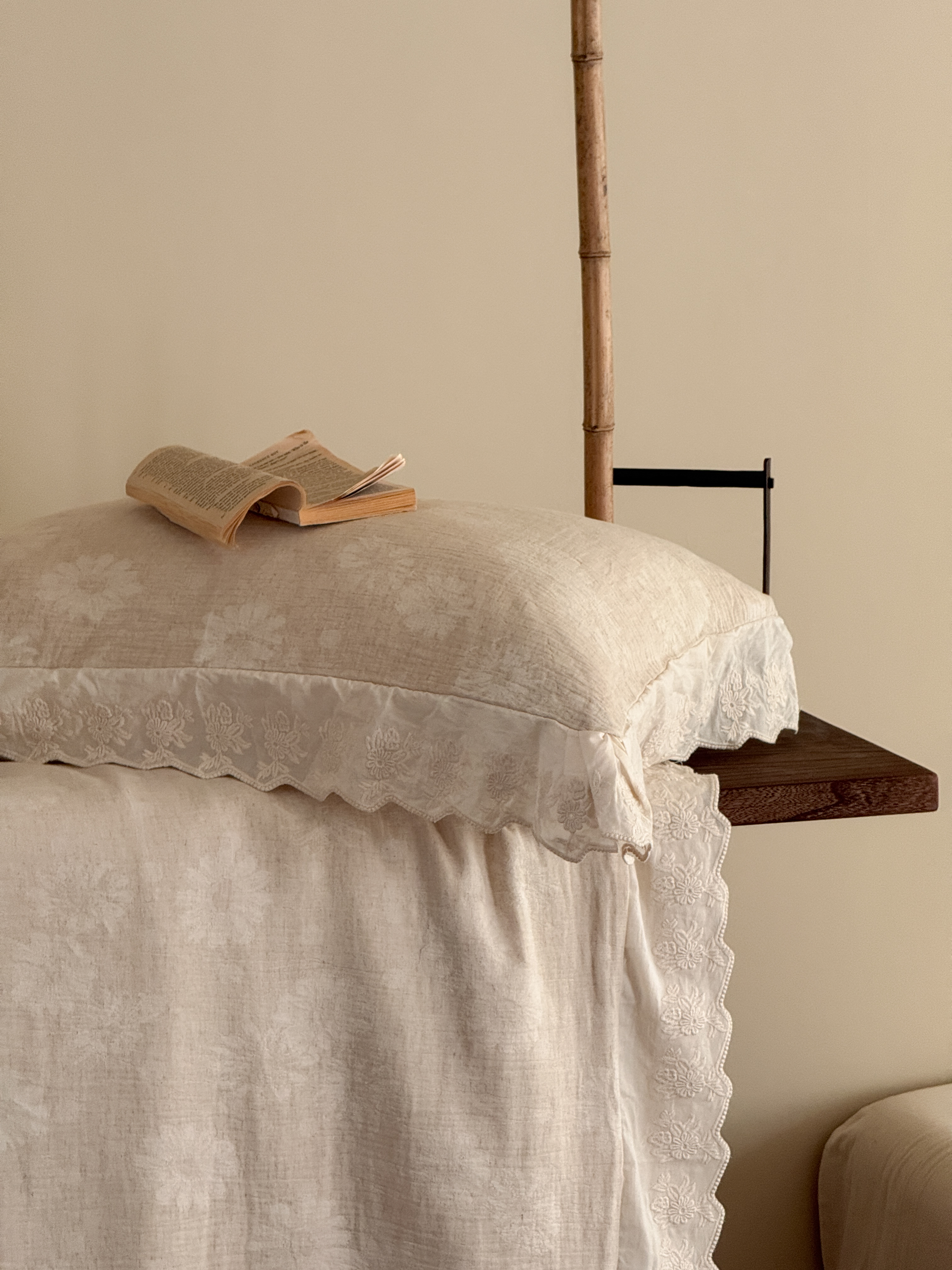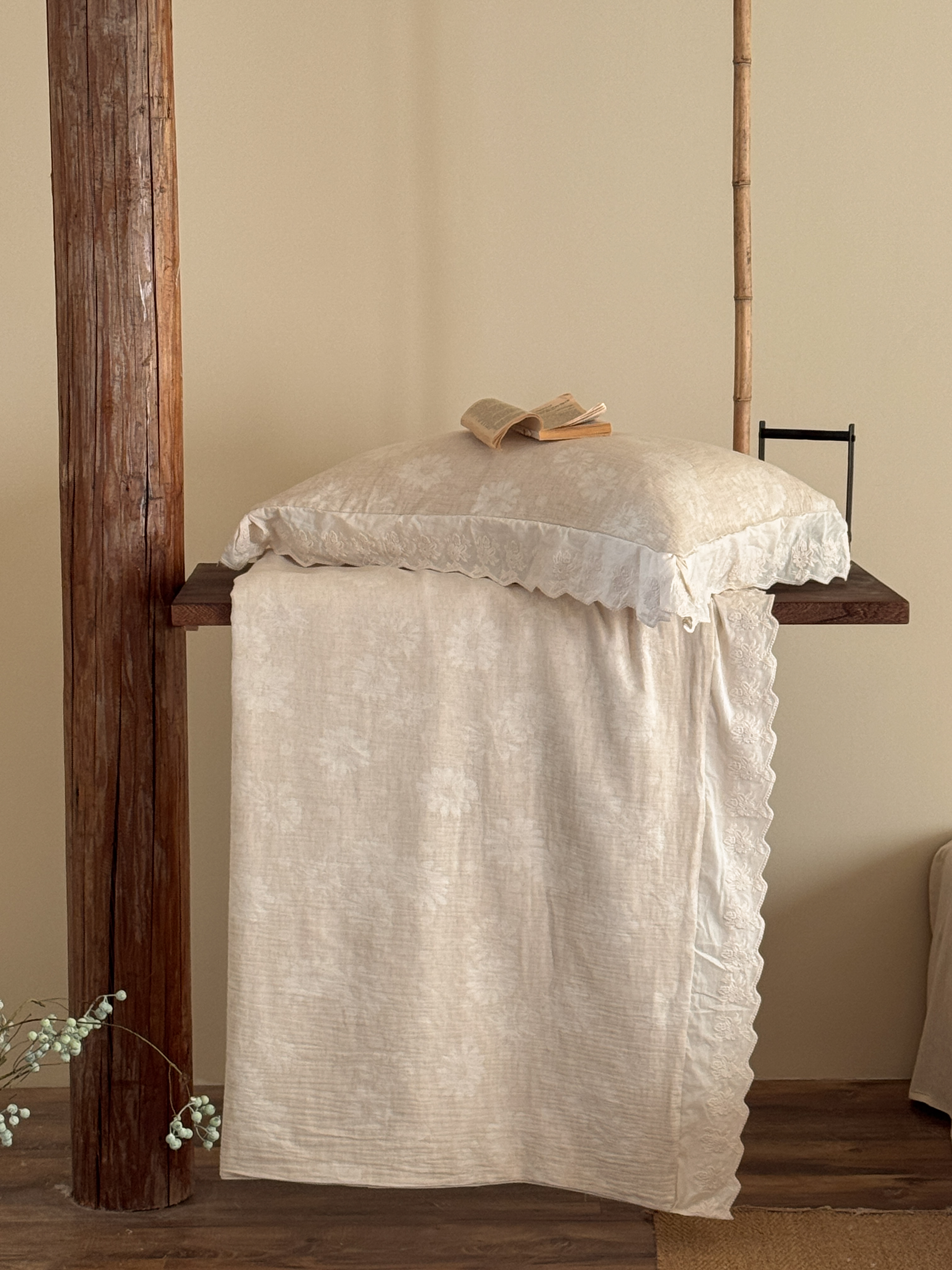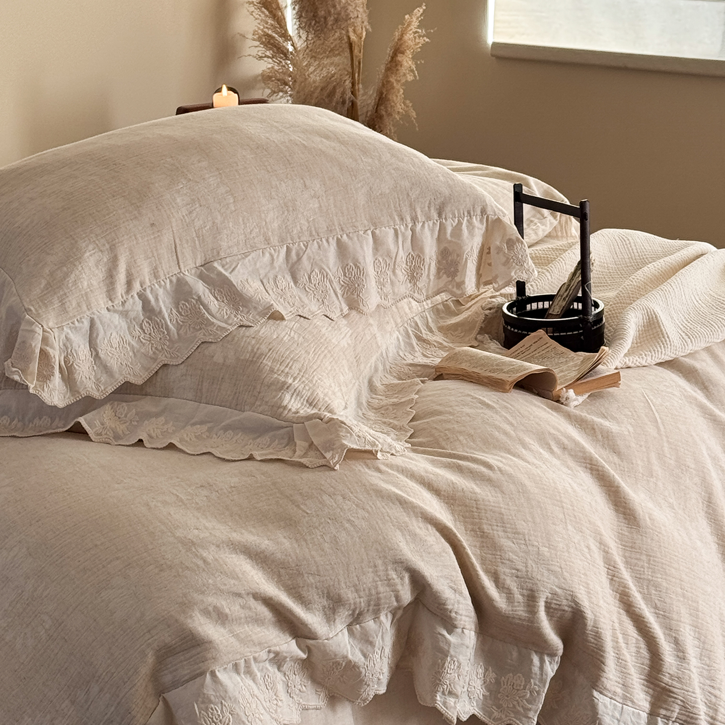 (总)爱丽丝 2026新款色织提花棉麻四件套-椿山集花边款,椿山集花边款