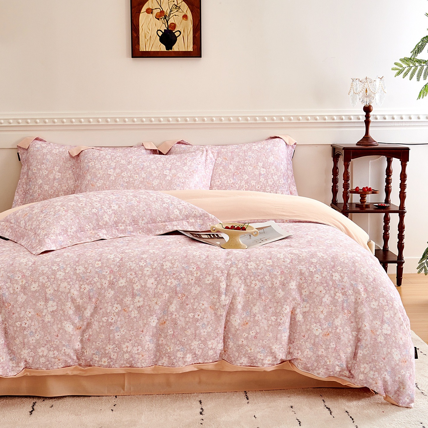 商品名称:芙绣家纺 2025新款全棉纯棉磨毛内合简单款四件套 花都-粉