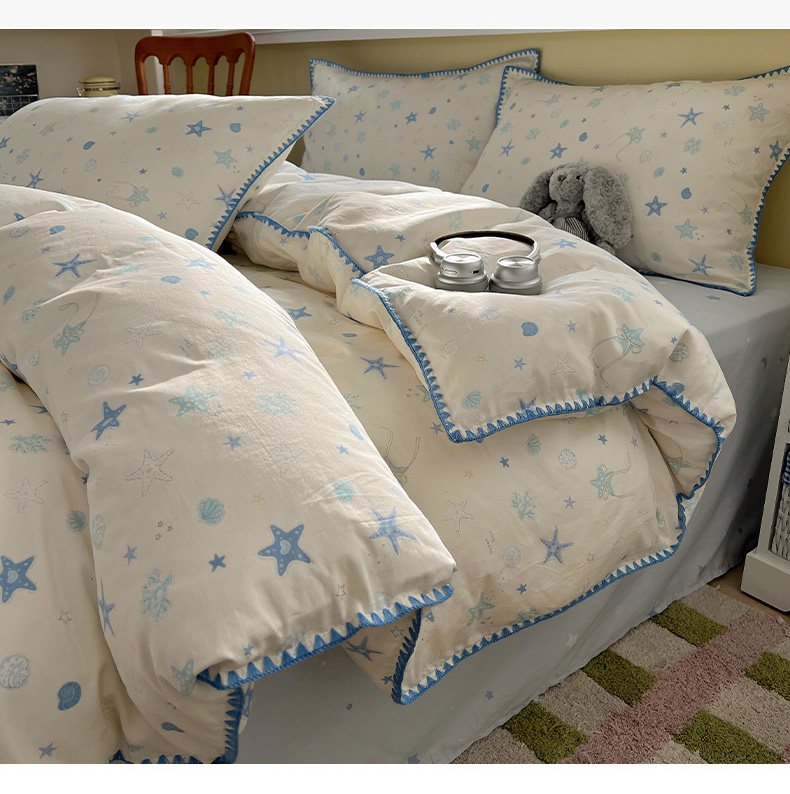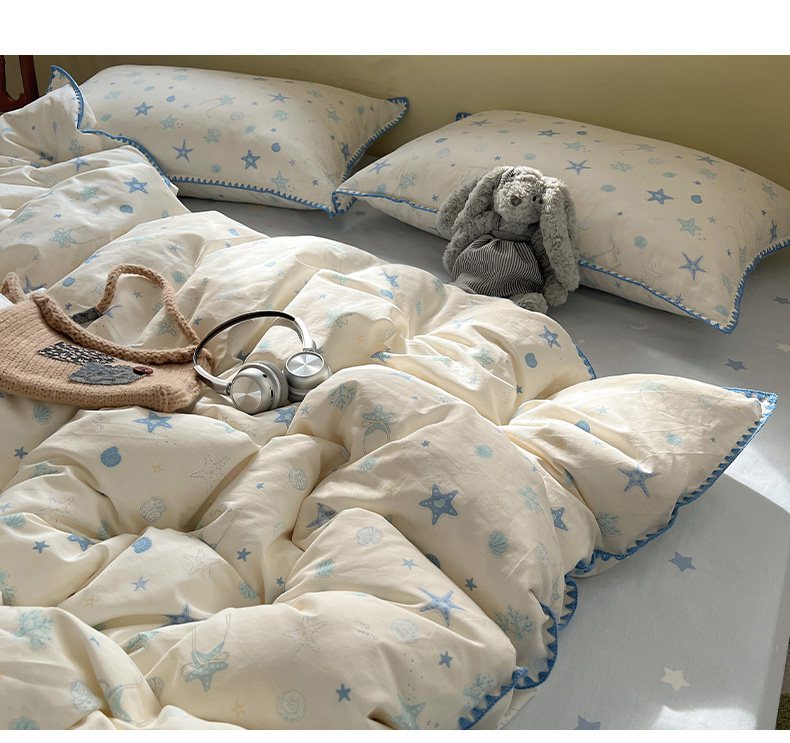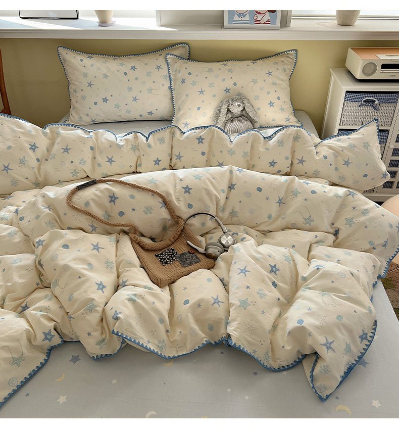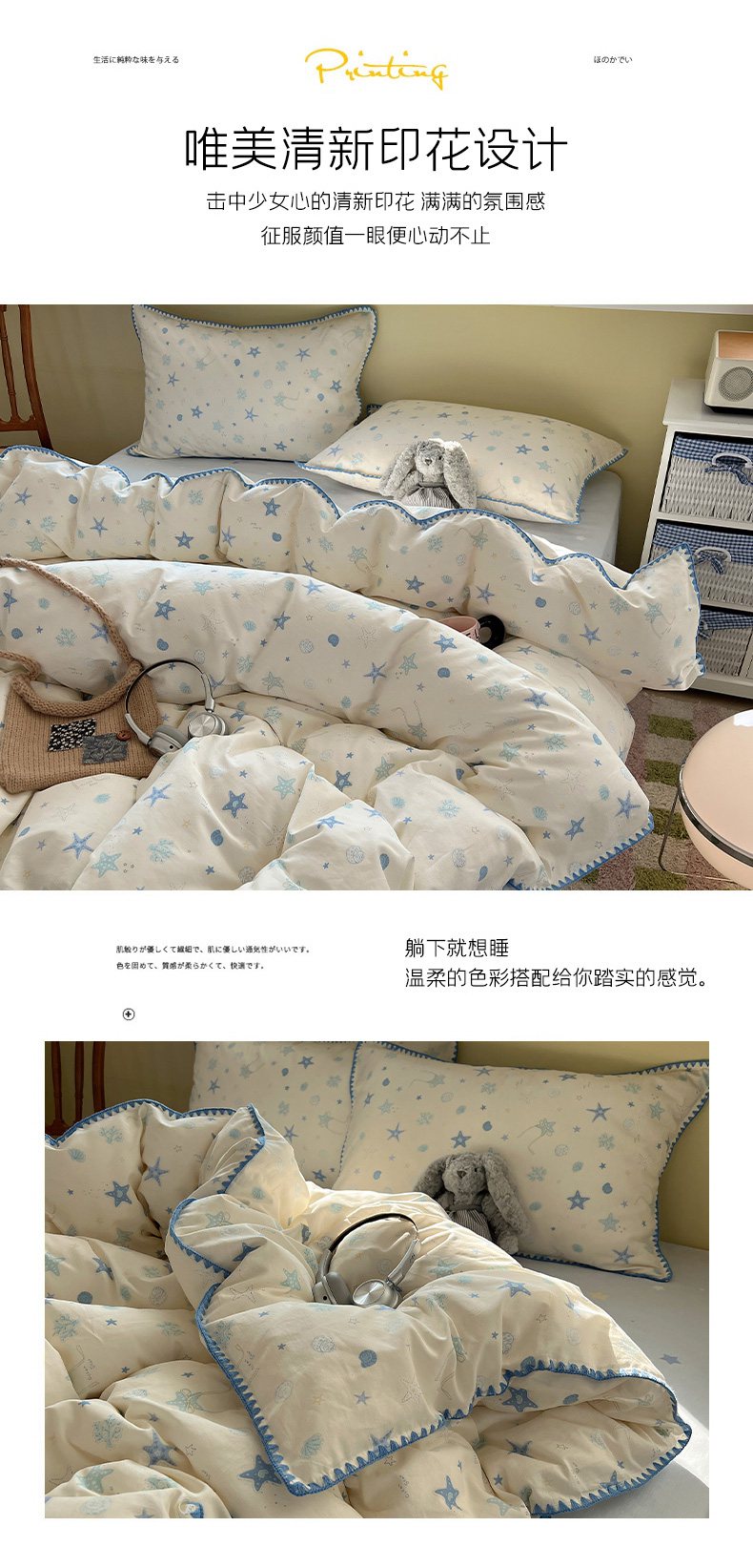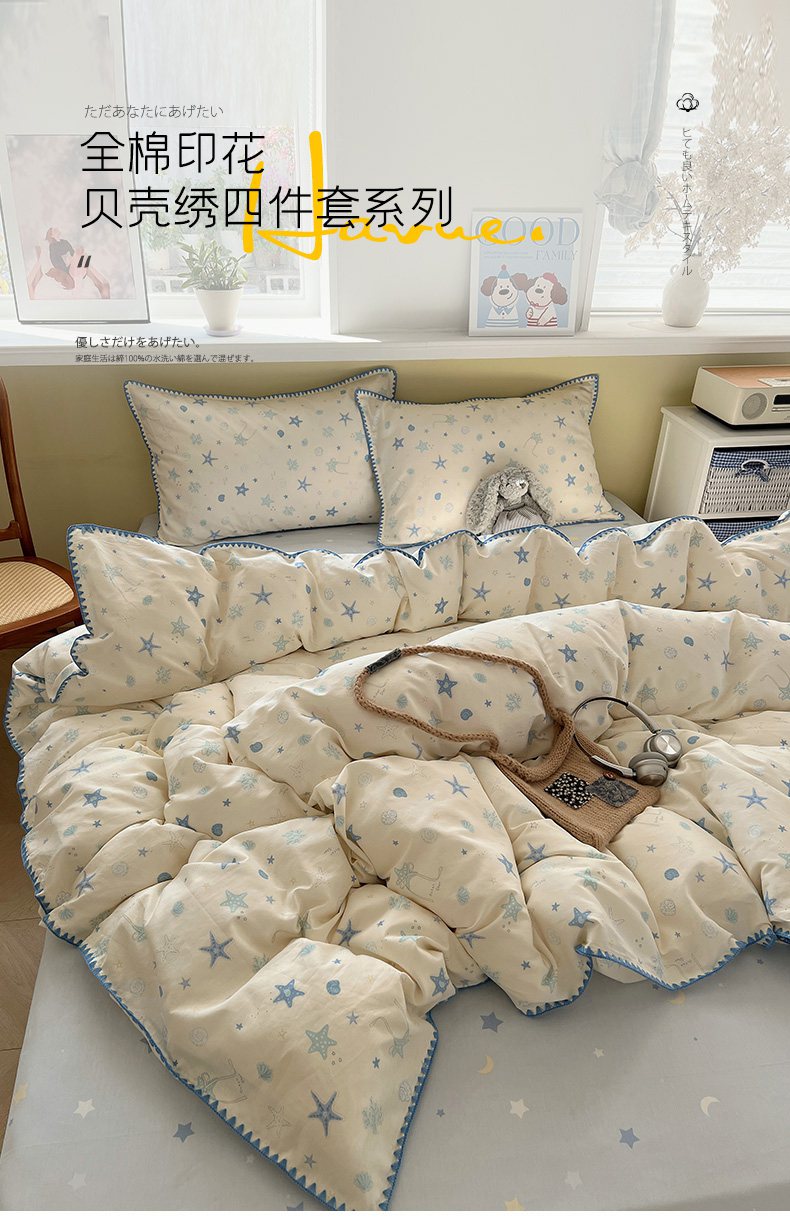 商品名称:瑞莱 2026新款全棉印花贝壳边四件套 挽星河