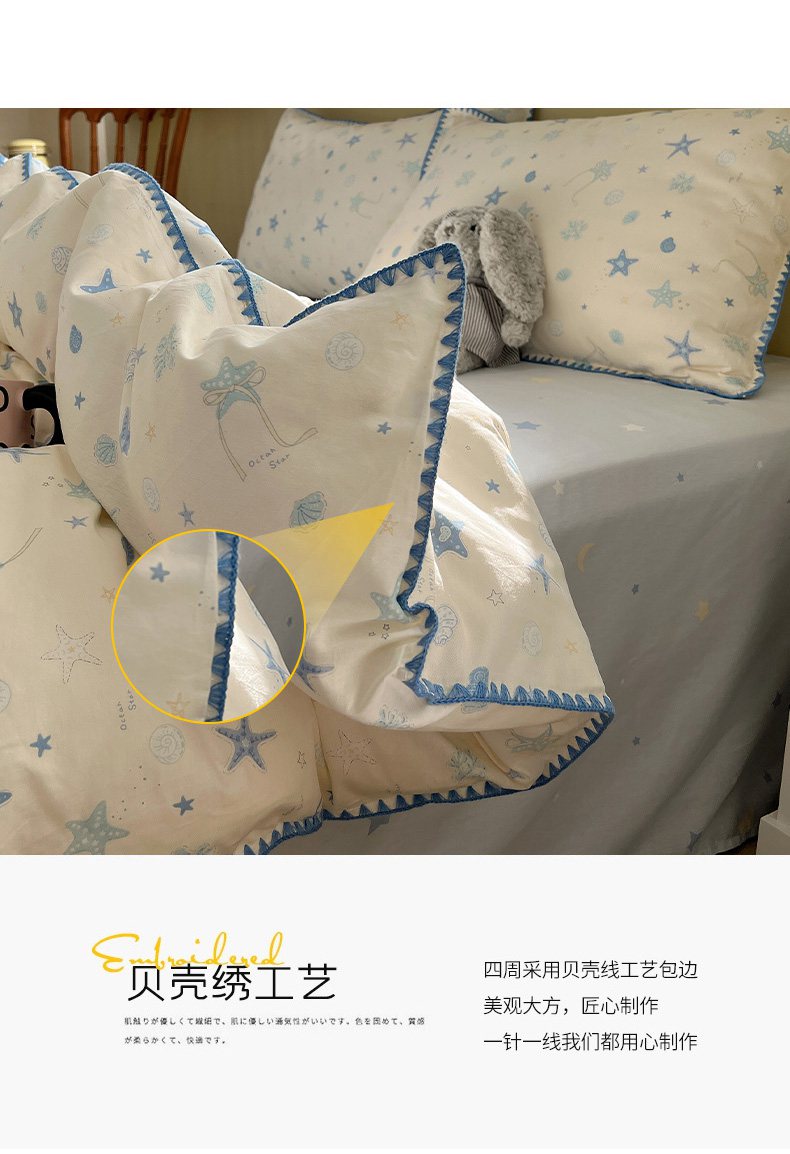 (总)瑞莱 2025新款全棉轻奢水洗棉贝壳绣四件套,豆沙,粉玉,米白,米黄,浅灰,浅蓝,深灰,深蓝,水绿,星蓝
