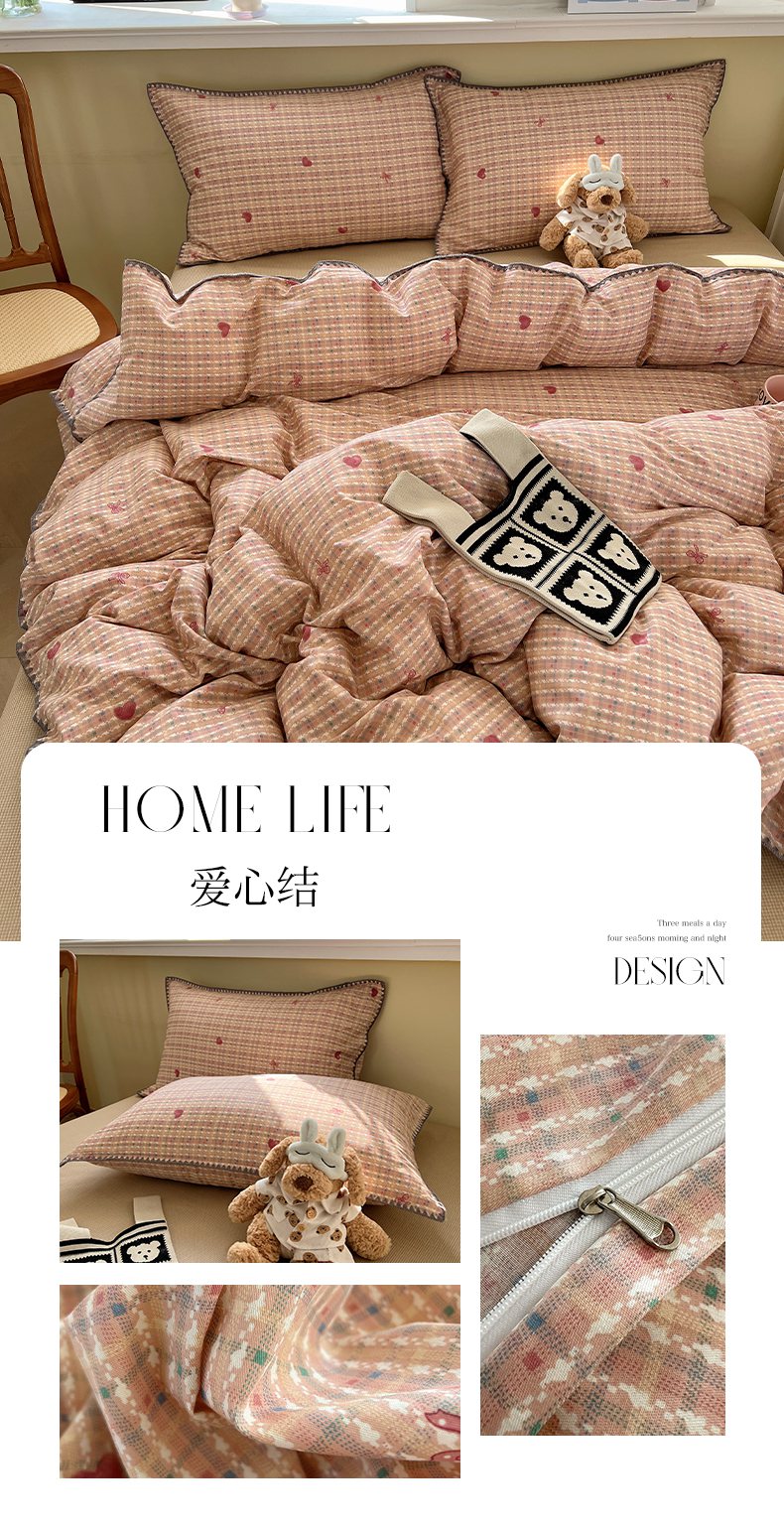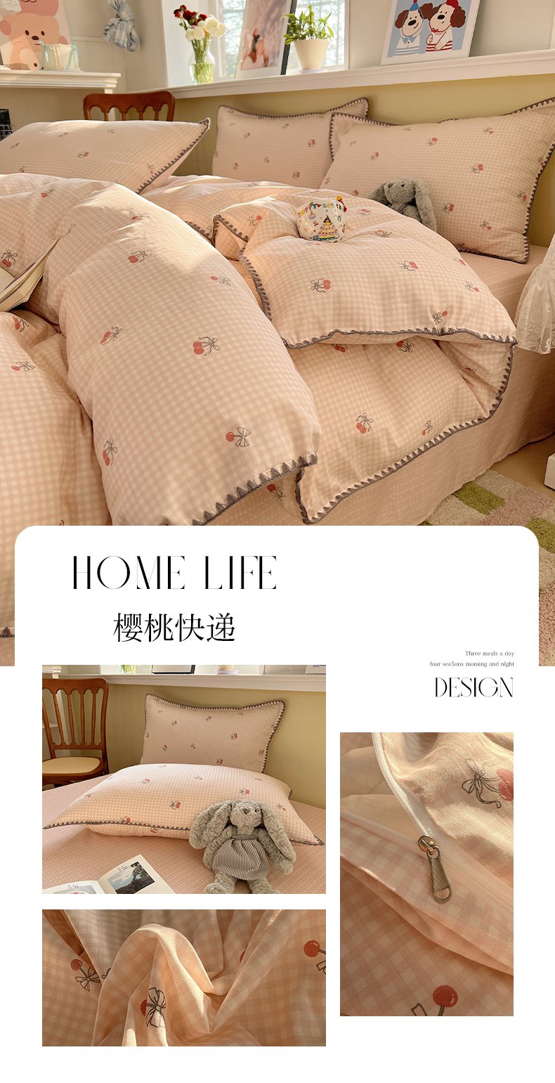 (总)瑞莱 2026新款A类全棉纯棉有氧双层纱四件套,白熊小姐,彩色木马,淡彩花笺,费尔岛小熊,焦糖奶汪-桔,焦糖奶汪-绿,萌星,苹果星星人,小樱桃,樱桃画报