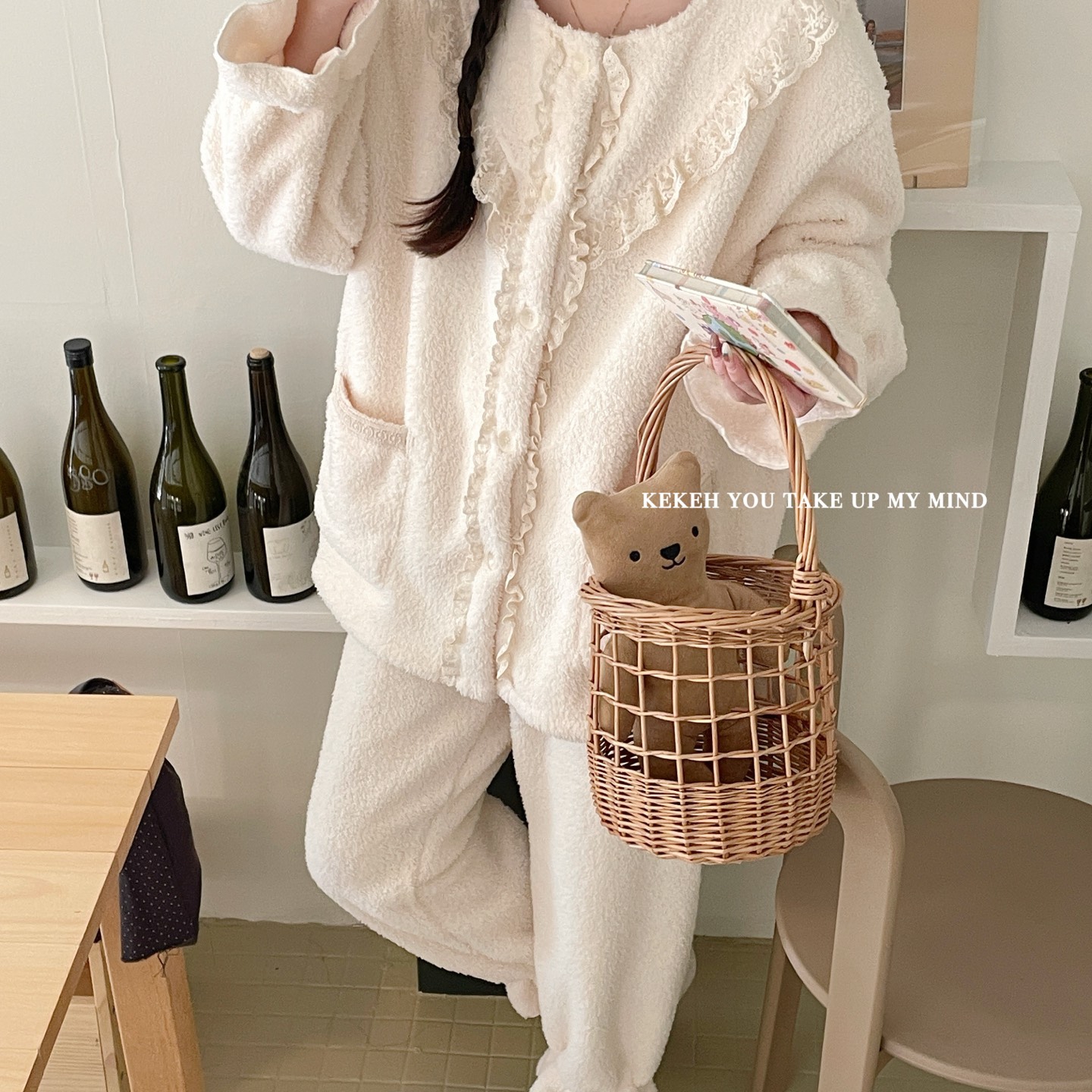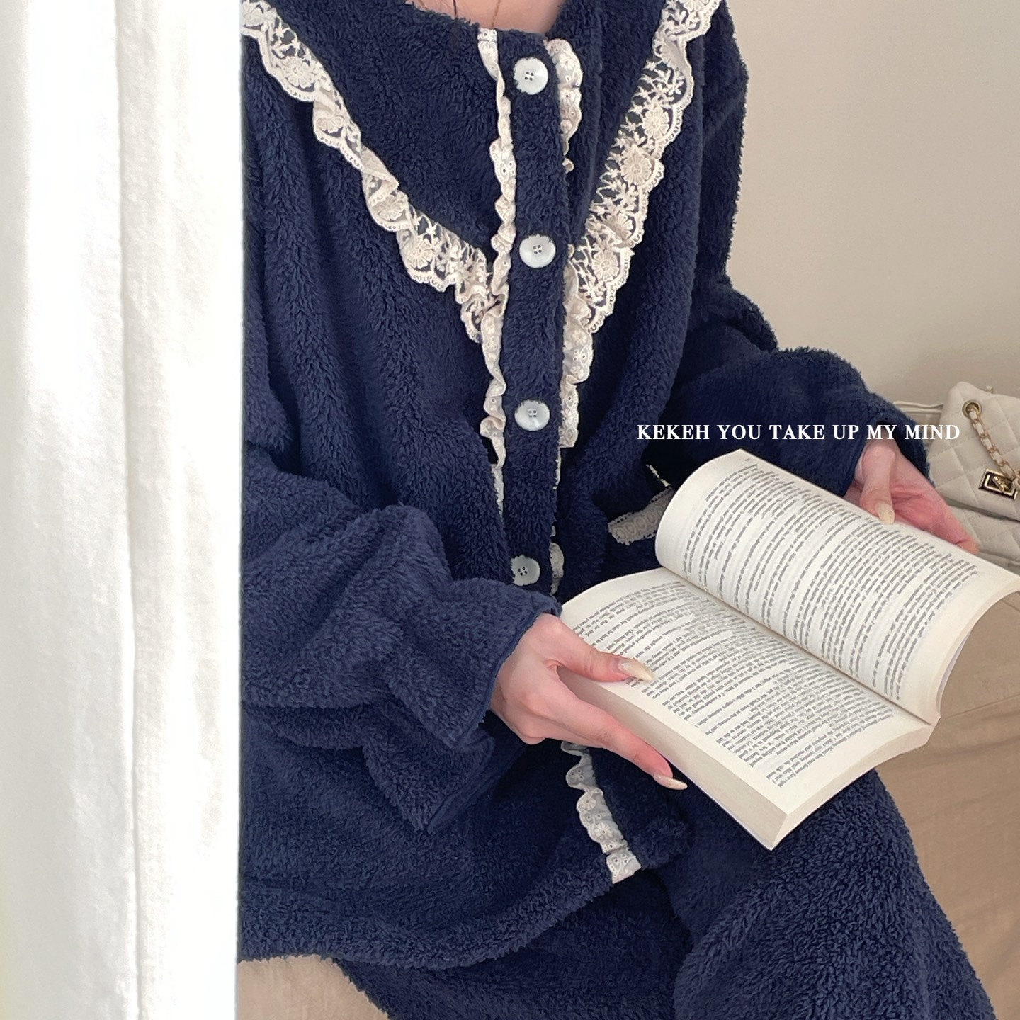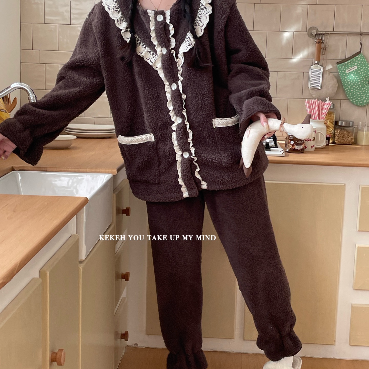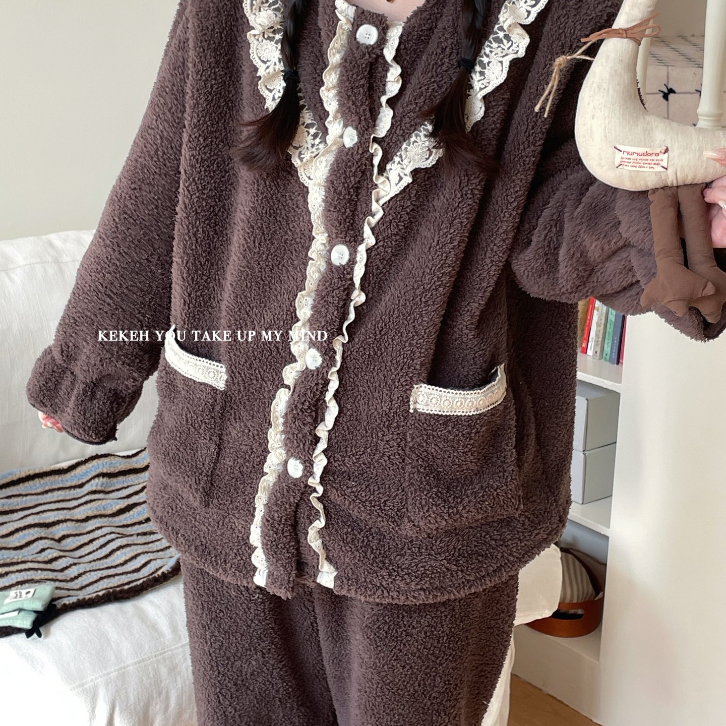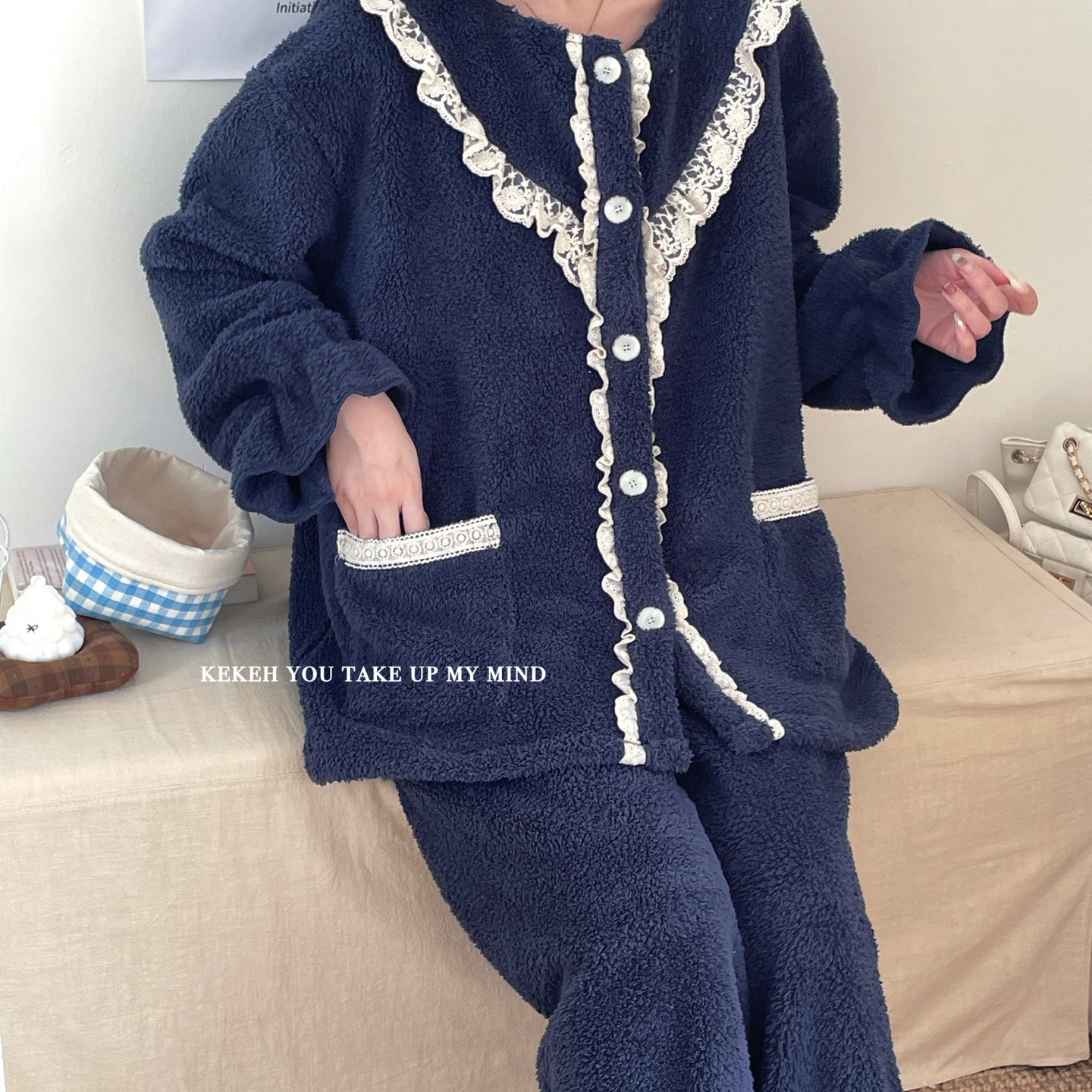 商品名称:妍景家居生活馆 2025新款韩系V领蕾丝套装 奶杏色