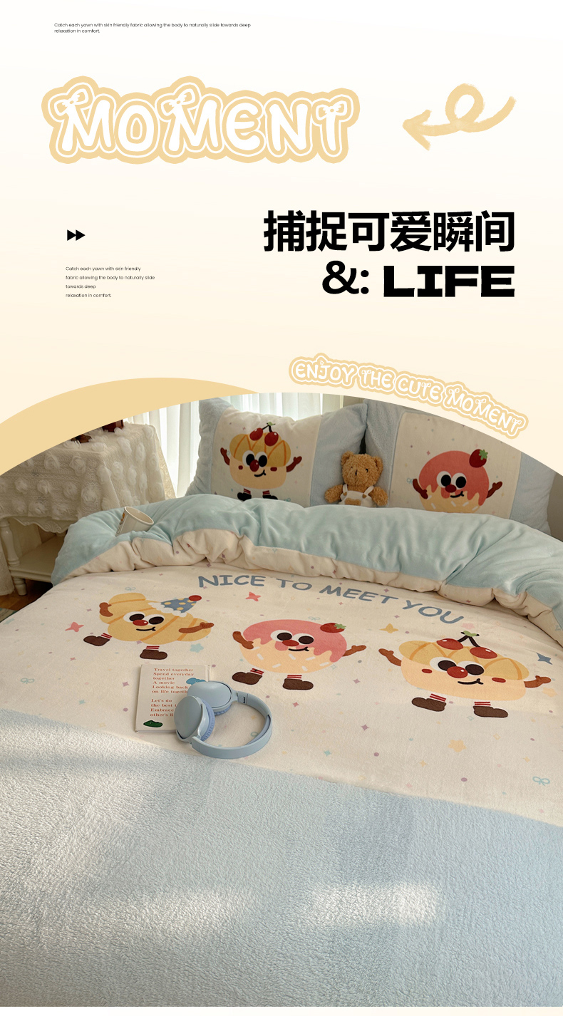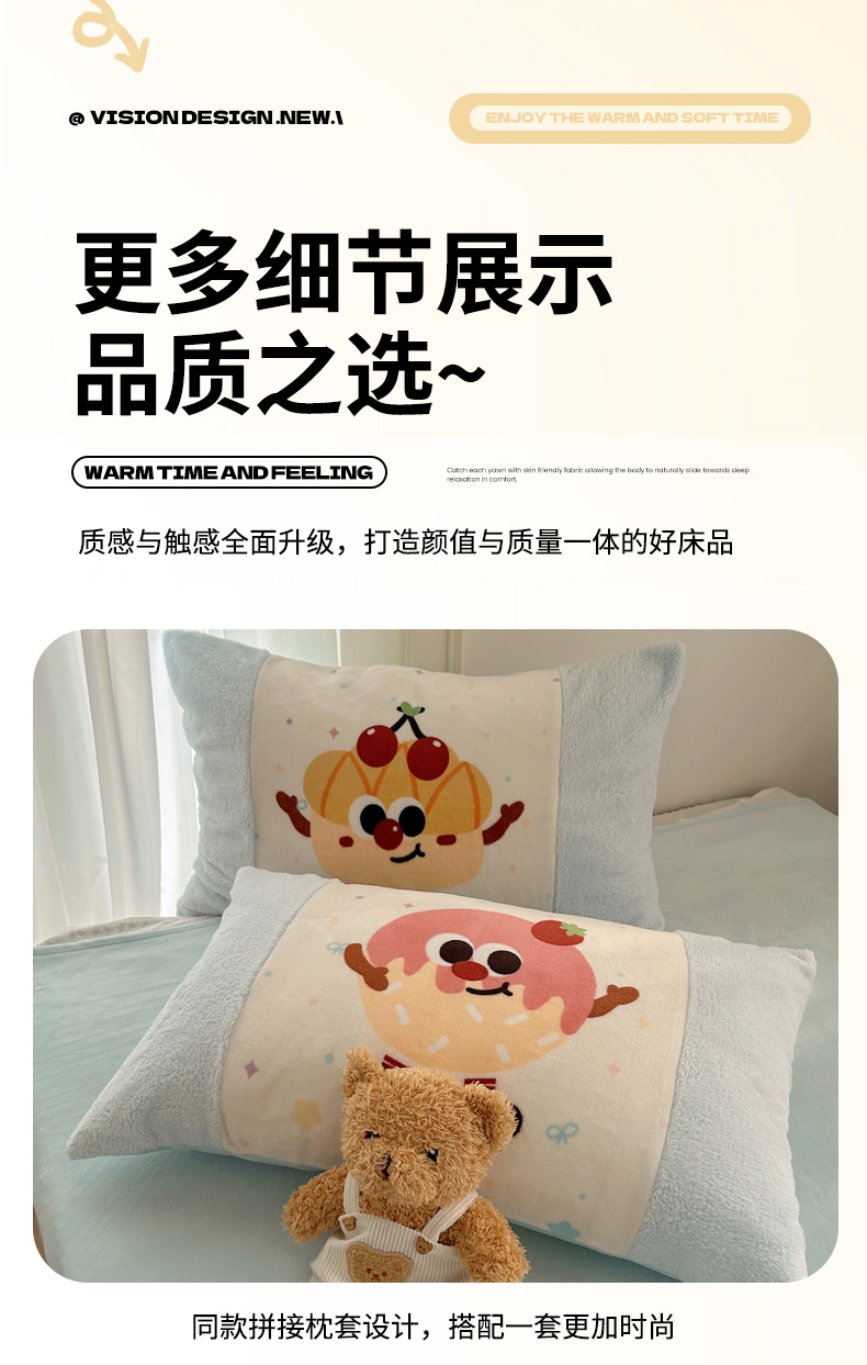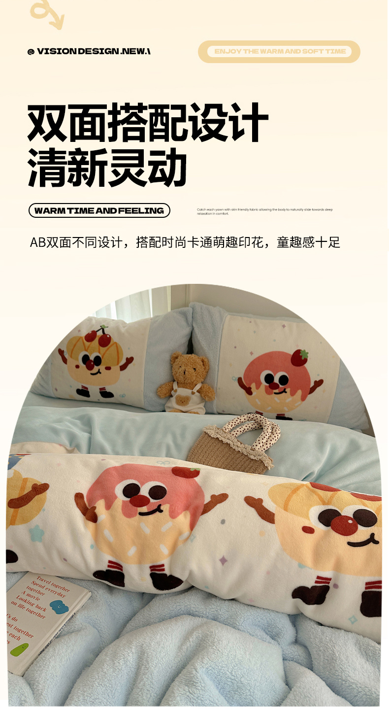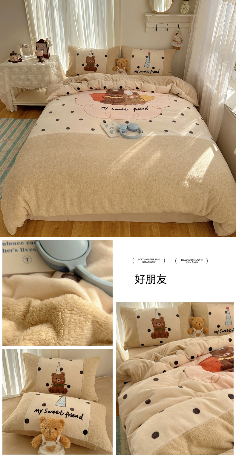 商品名称:Sweet dreams甜梦 2025秋冬数码大版牛奶绒泰迪绒拼接四件套 童趣蛋糕