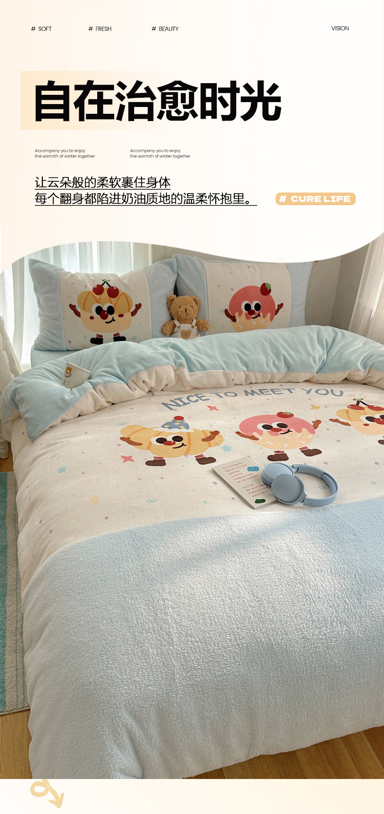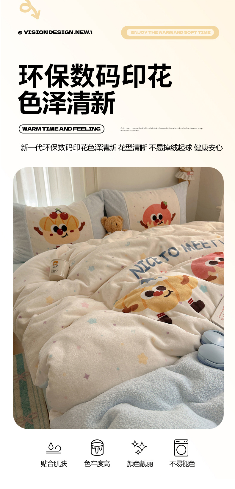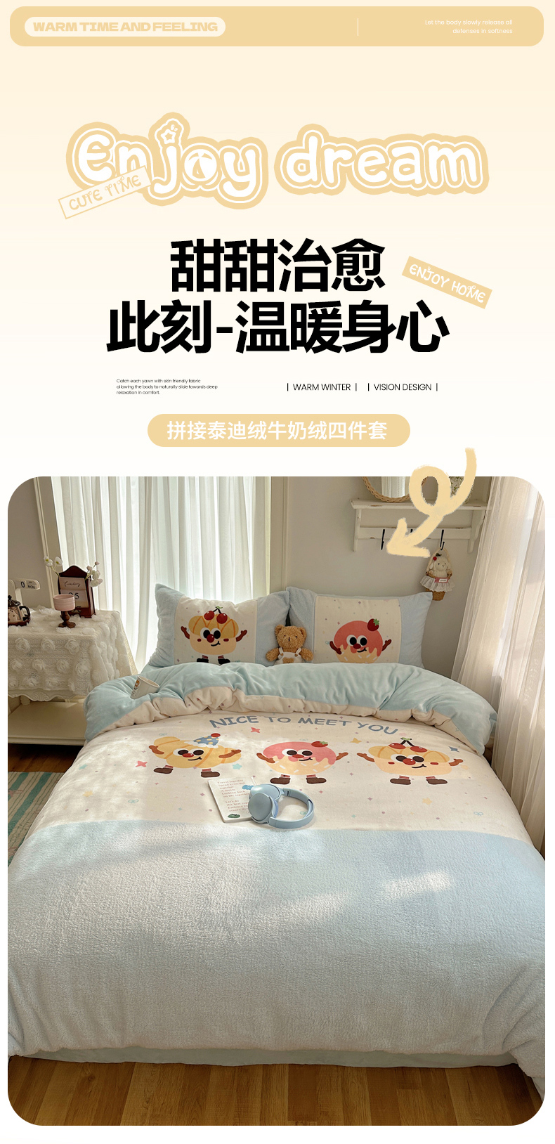 商品名称:Sweet dreams甜梦 2025秋冬数码大版牛奶绒泰迪绒拼接四件套 童趣蛋糕