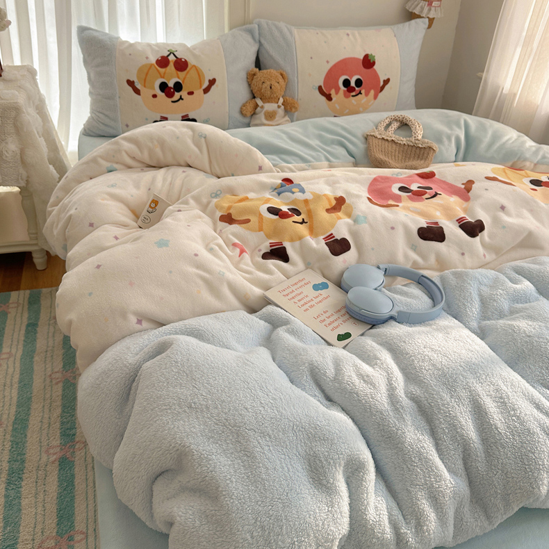 Sweet dreams甜梦 2025秋冬数码大版牛奶绒泰迪绒拼接四件套 童趣蛋糕
