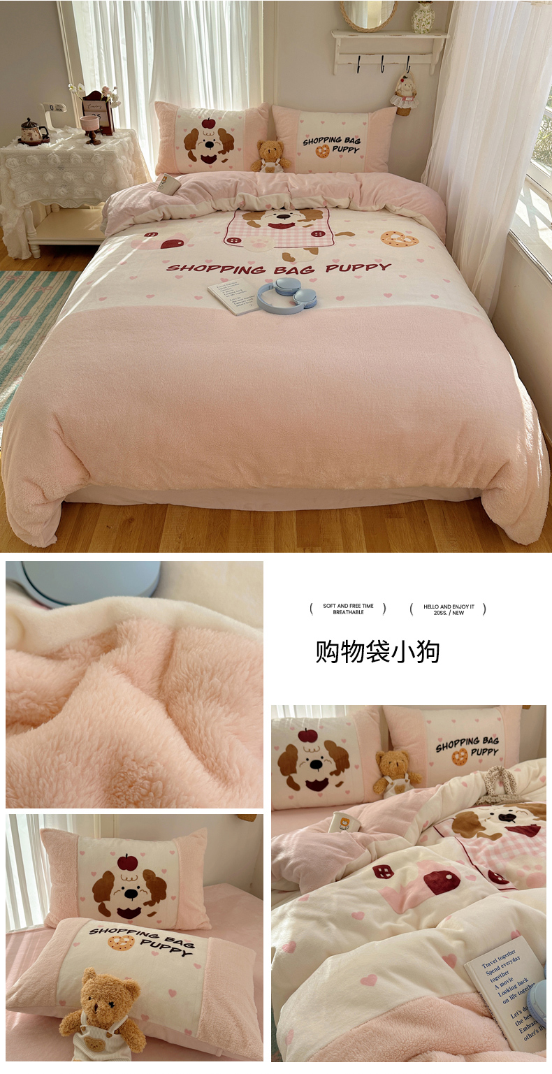 (总)Sweet dreams甜梦 2025秋冬数码大版牛奶绒泰迪绒拼接四件套,圣诞小狗,购物袋小狗,旋转木马,童趣蛋糕,好朋友,蛋糕小熊