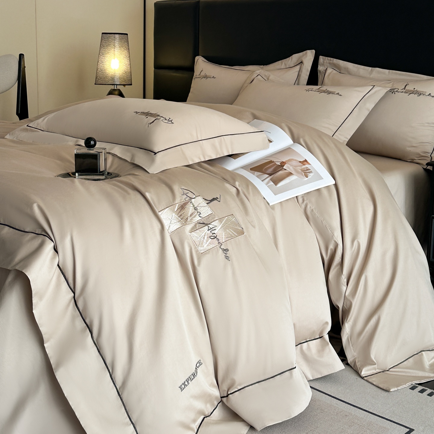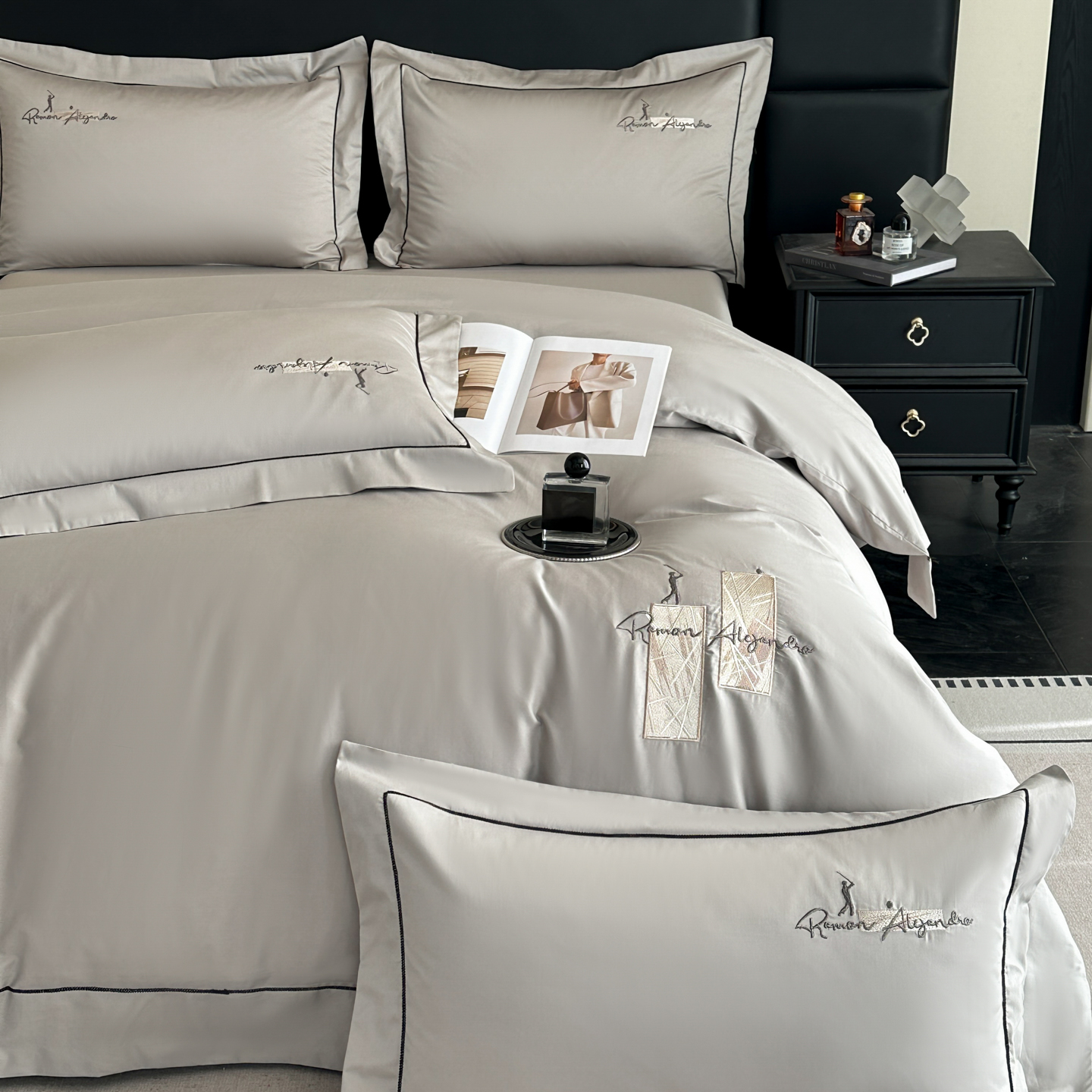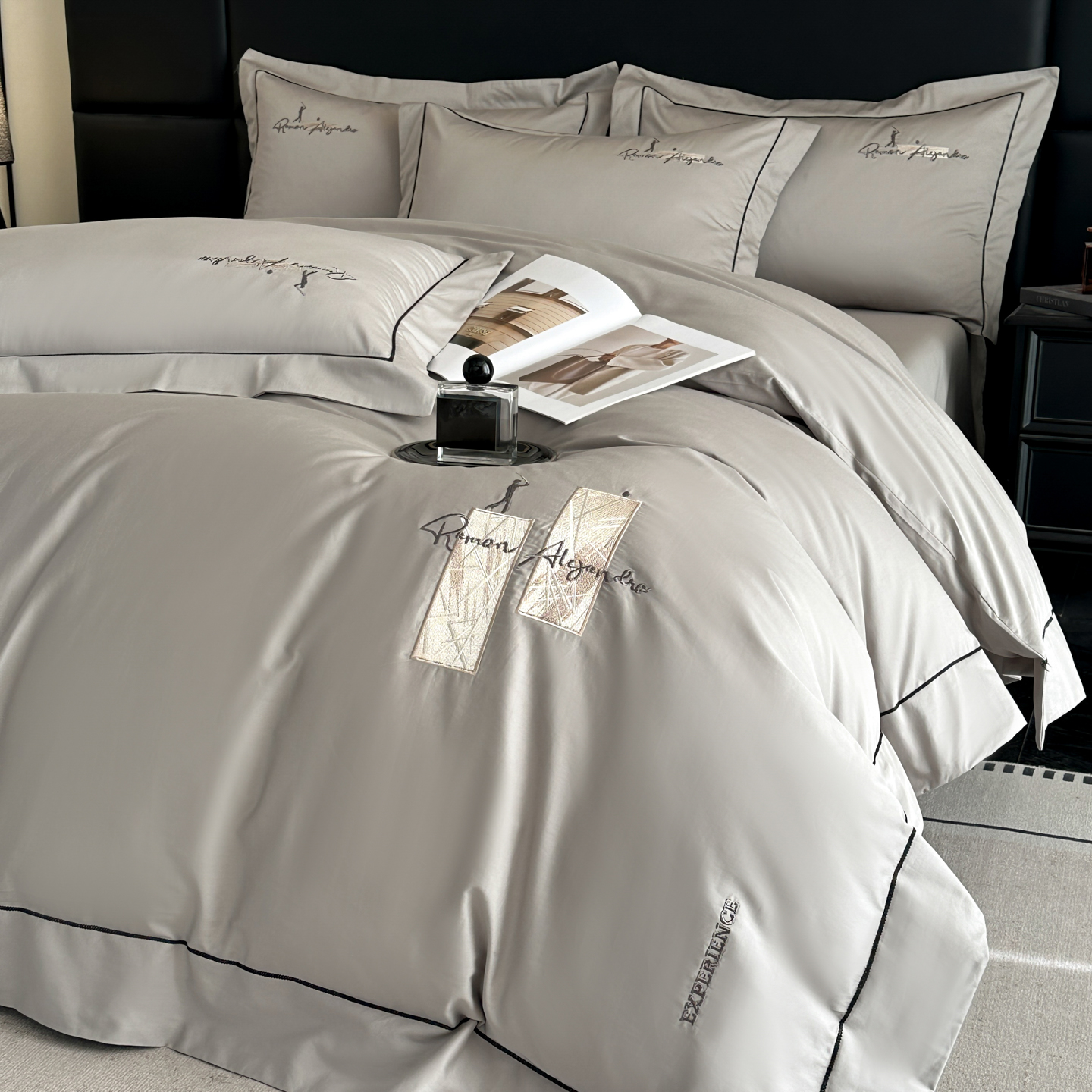 (总)【控价】新方向 2026新款刺绣全棉100s贡缎长绒棉四件套-亚瑟,亚瑟-爵士灰,亚瑟-香槟