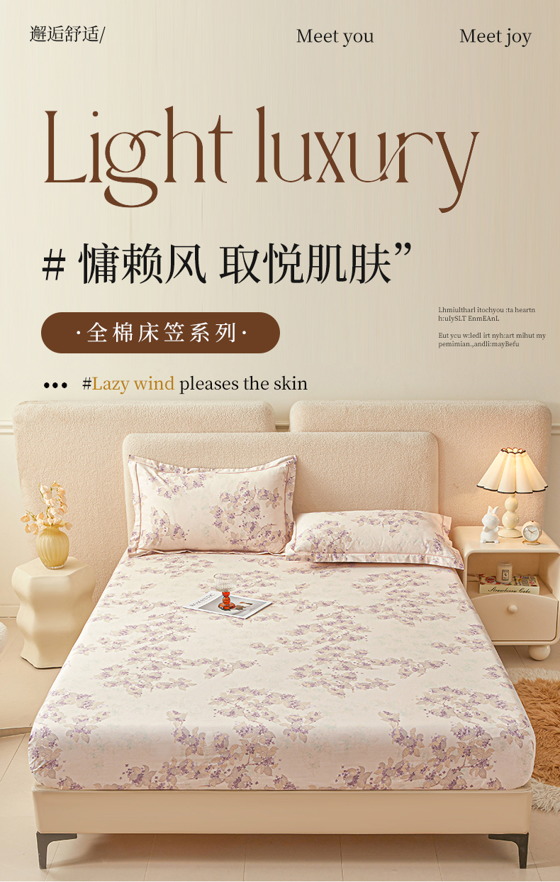 当前位置: 91家纺网 > 商品网购 > 床上用品 > 床笠 > 名优家纺 2026新款纯色高密全棉纯棉床笠单床笠床笠单件 春日序-紫