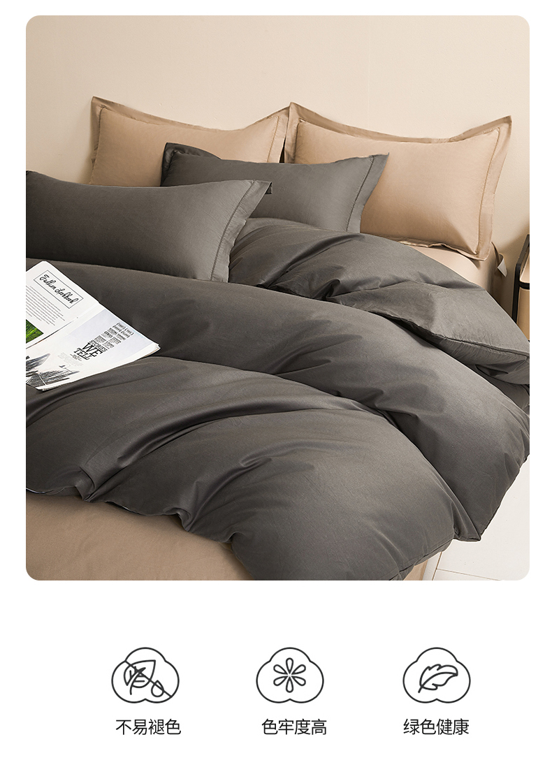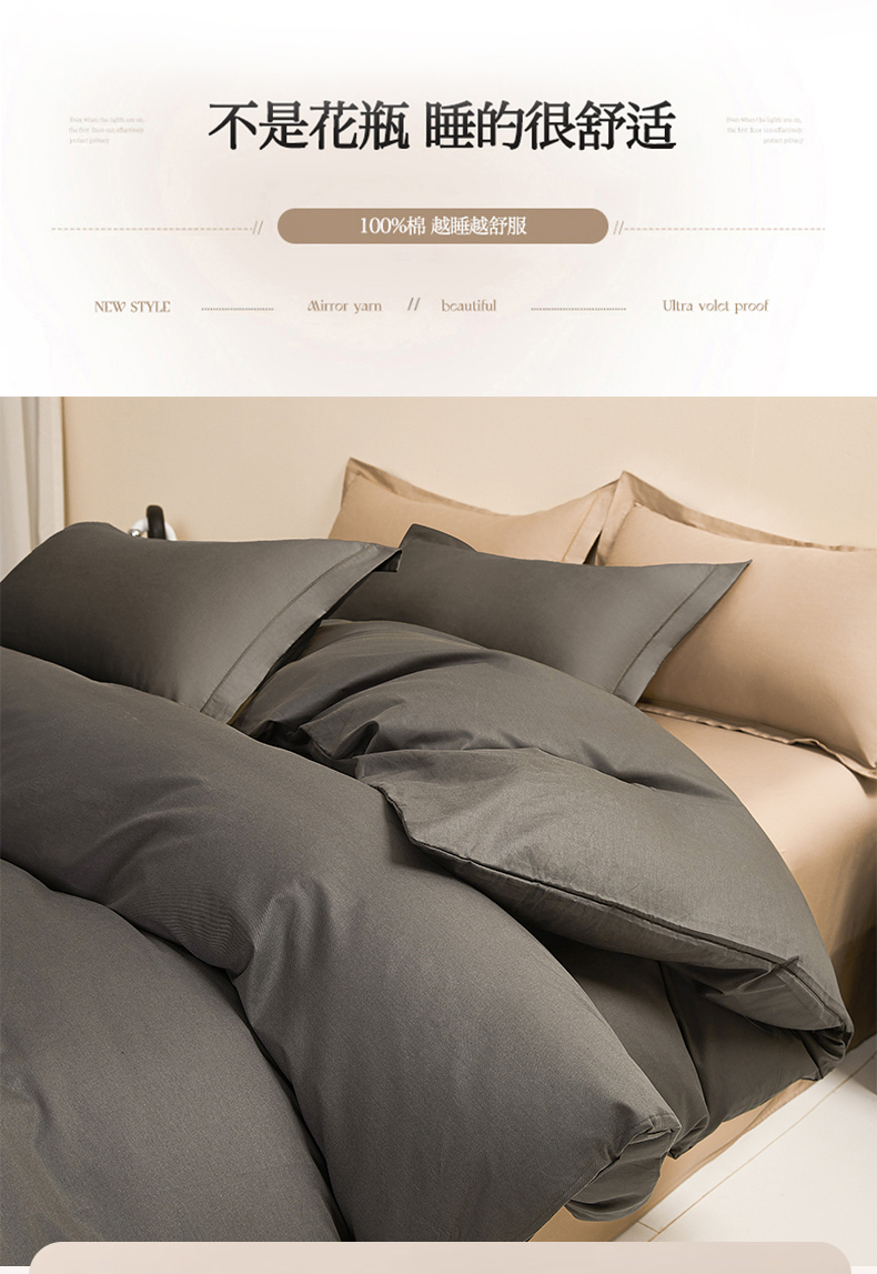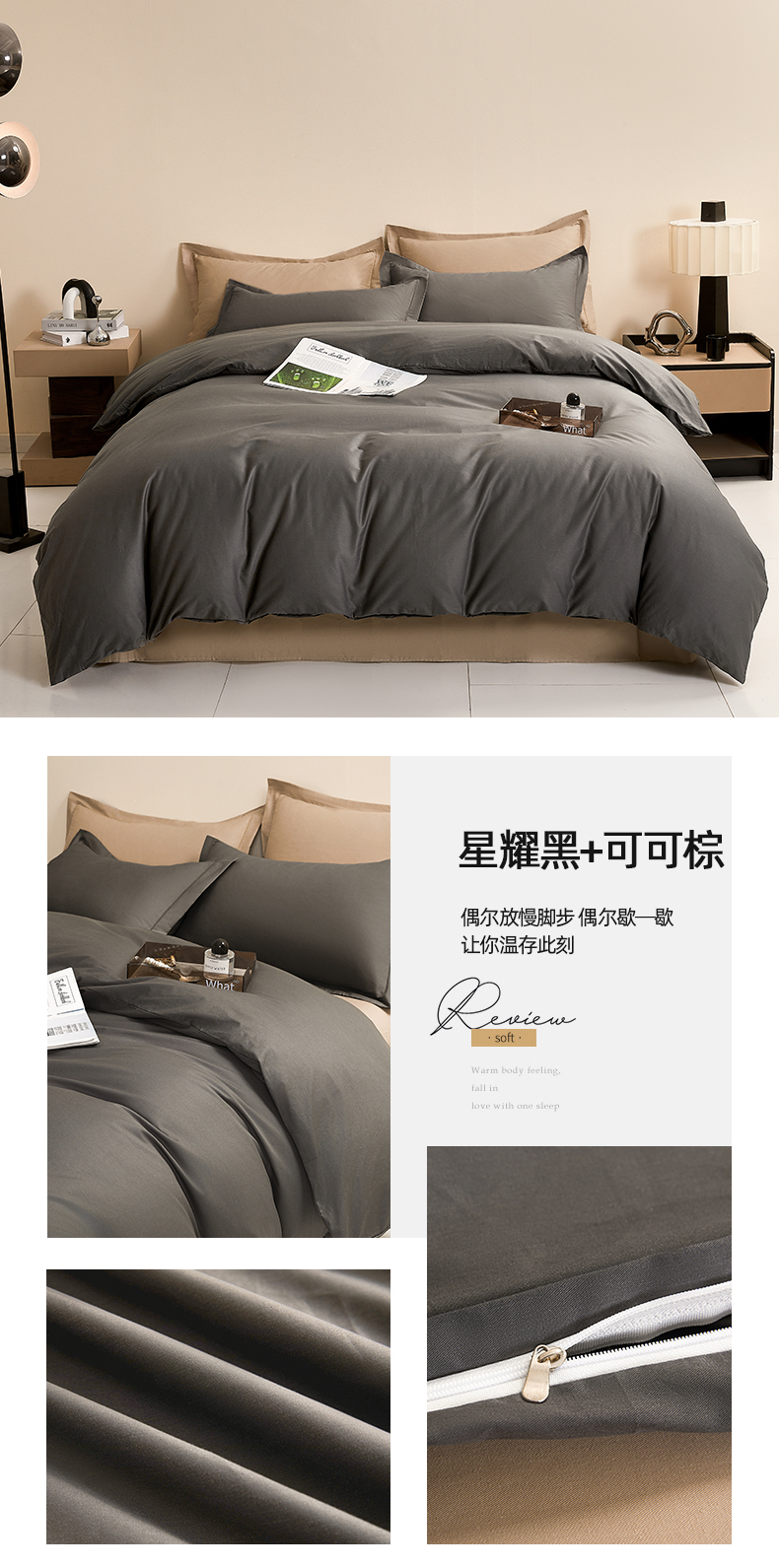 当前位置: 91家纺网 > 商品网购 > 床品套件 > 四件套 > 全棉普通四件套 > 名优家纺 2026新款60S13374高支密全棉印花纯色四件套 星耀黑+可可棕