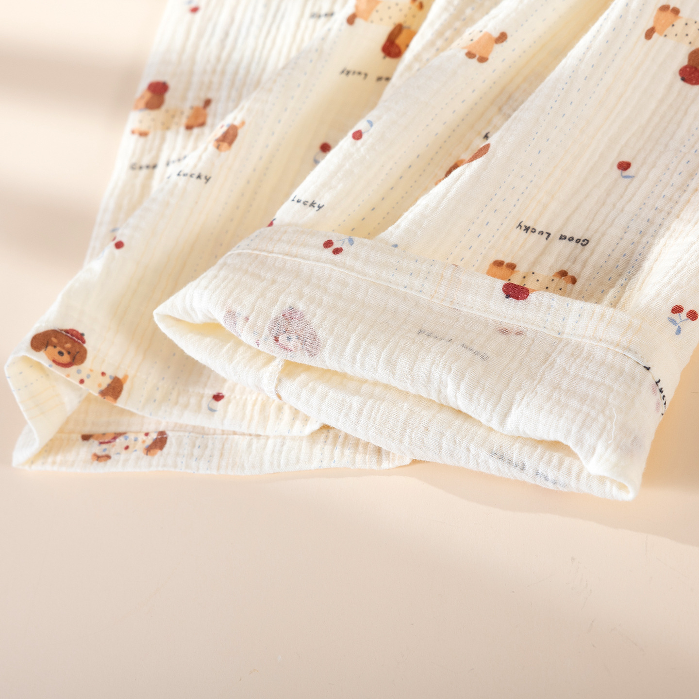 商品名称:洛兰沙家居馆 2025新款双层绉纱棉纱卡通系列女士家居服睡衣长袖长裤透气舒适四季款纯棉 奶芙格纹