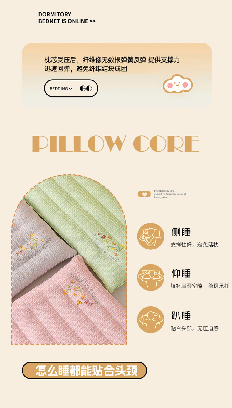 当前位置: 91家纺网 > 商品网购 > 枕头/枕芯/保健枕/颈椎枕 > 枕头枕芯 > 仁宇枕业 2025新款新品彩色针织棉低枕头枕芯 针织棉低枕小香豆-粉色