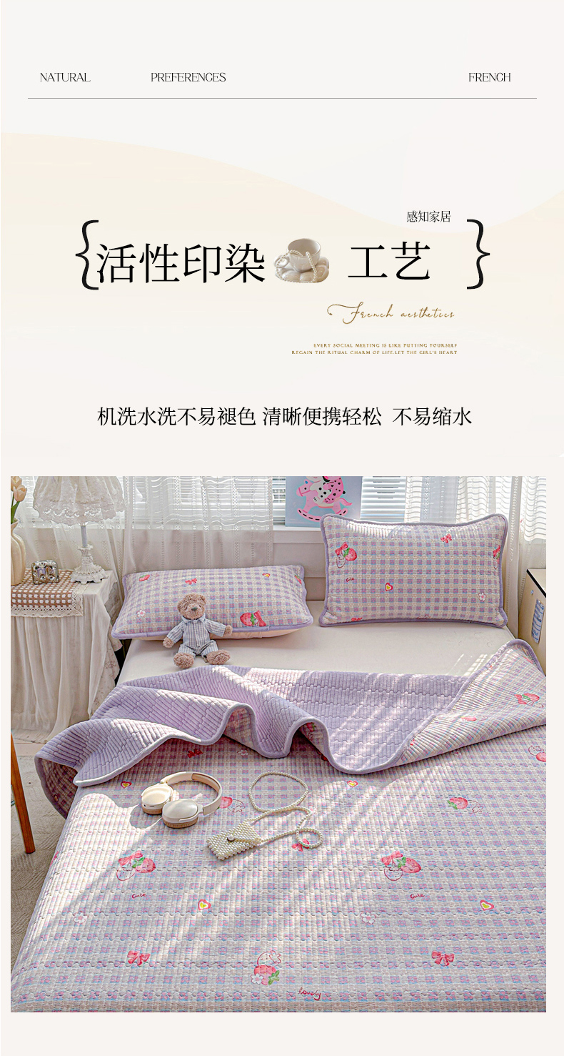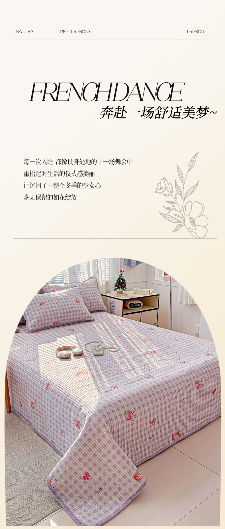 • 91家纺网 家纺一手货源 找家纺 恒尚居 2026新款A双层纱B牛奶绒床盖双面两用夹棉床单学生床垫床褥子系列二 草莓世界【A双层纱-B牛奶绒】