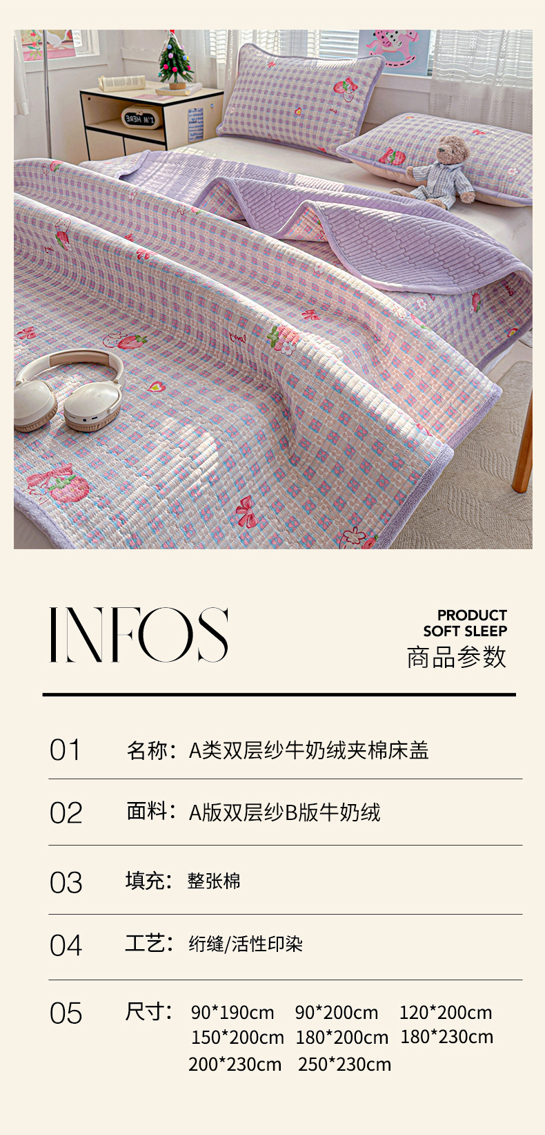 (总)恒尚居 2026新款A双层纱B牛奶绒床盖双面两用夹棉床单学生床垫床褥子,miu miu【A双层纱-B牛奶绒】,爱心狗【A双层纱-B牛奶绒】,草莓格【A双层纱-B牛奶绒】,刺猬与兔【A双层纱-B牛奶绒】,大笨狗【A双层纱-B牛奶绒】,动物世界【A双层纱-B牛奶绒】,粉格蝴蝶结【A双层纱-B牛奶绒】,海盐蝴蝶结【A双层纱-B牛奶绒】,欢乐狗【A双层纱-B牛奶绒】,焦糖爱心【A双层纱-B牛奶绒】,卡其蝴蝶结【A双层纱-B牛奶绒】,满天星【A双层纱-B牛奶绒】,奇奇狗【A双层纱-B牛奶绒】,天蓝格【A双层纱-B牛奶绒】,晚安小熊【A双层纱-B牛奶绒】,小碎花【A双层纱-B牛奶绒】,悠然粉【A双层纱-B牛奶绒】,紫色印象【A双层纱-B牛奶绒】,紫萱【A双层纱-B牛奶绒】,组合图仅供参考不可下单