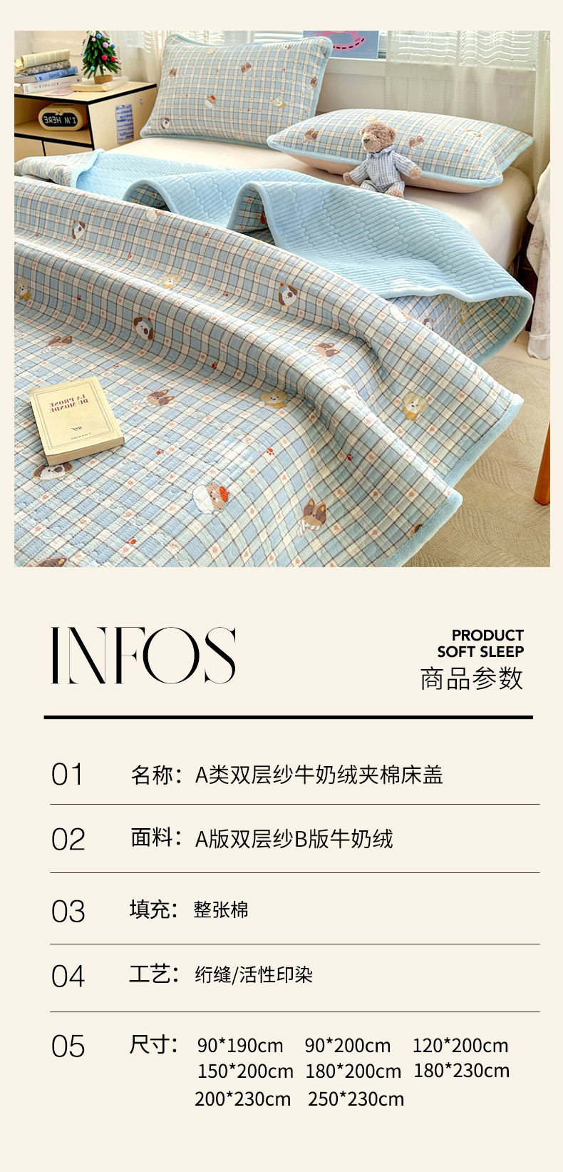(总)恒尚居 2026新款A双层纱B牛奶绒床盖双面两用夹棉床单学生床垫床褥子系列二,KT猫【A双层纱-B牛奶绒】,拉布布【A双层纱-B牛奶绒】,贝拉格-咖啡【A双层纱-B牛奶绒】,波点狗狗【A双层纱-B牛奶绒】,花篮兔【A双层纱-B牛奶绒】,格子小熊【A双层纱-B牛奶绒】,草莓世界【A双层纱-B牛奶绒】,棒棒糖女孩【A双层纱-B牛奶绒】,蓝调【A双层纱-B牛奶绒】,落叶【A双层纱-B牛奶绒】,萌宠乐园【A双层纱-B牛奶绒】,兔子乐队【A双层纱-B牛奶绒】,完美日记【A双层纱-B牛奶绒】,汪汪队【A双层纱-B牛奶绒】,星月【A双层纱-B牛奶绒】,阳光庄园【A双层纱-B牛奶绒】,英伦格【A双层纱-B牛奶绒】,紫罗花【A双层纱-B牛奶绒】,组合图仅供参考不可下单