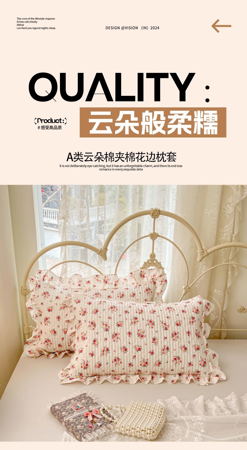 • 91家纺网 家纺一手货源 找家纺 梦舒羽 2026新款A类云朵棉夹棉花边枕套宿舍单人一只装枕芯内胆套-单人枕套 粉黛花园(花边夹棉)