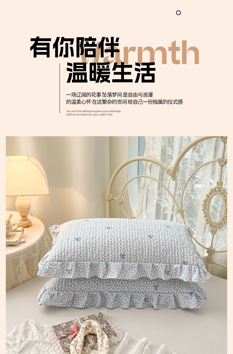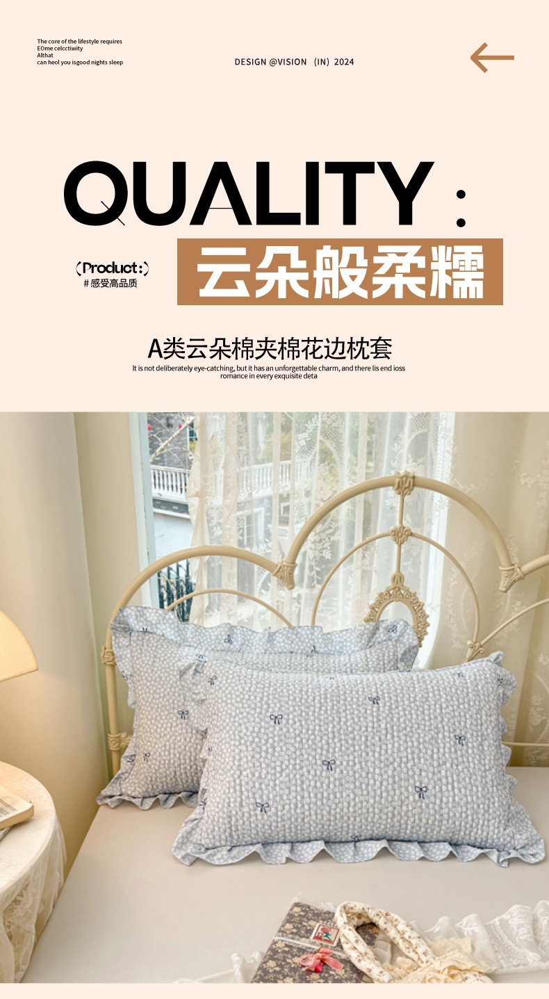 • 91家纺网 家纺一手货源 找家纺 梦舒羽 2026新款A类云朵棉夹棉花边枕套宿舍单人一只装枕芯内胆套-单人枕套 花屿轻梦(花边夹棉)