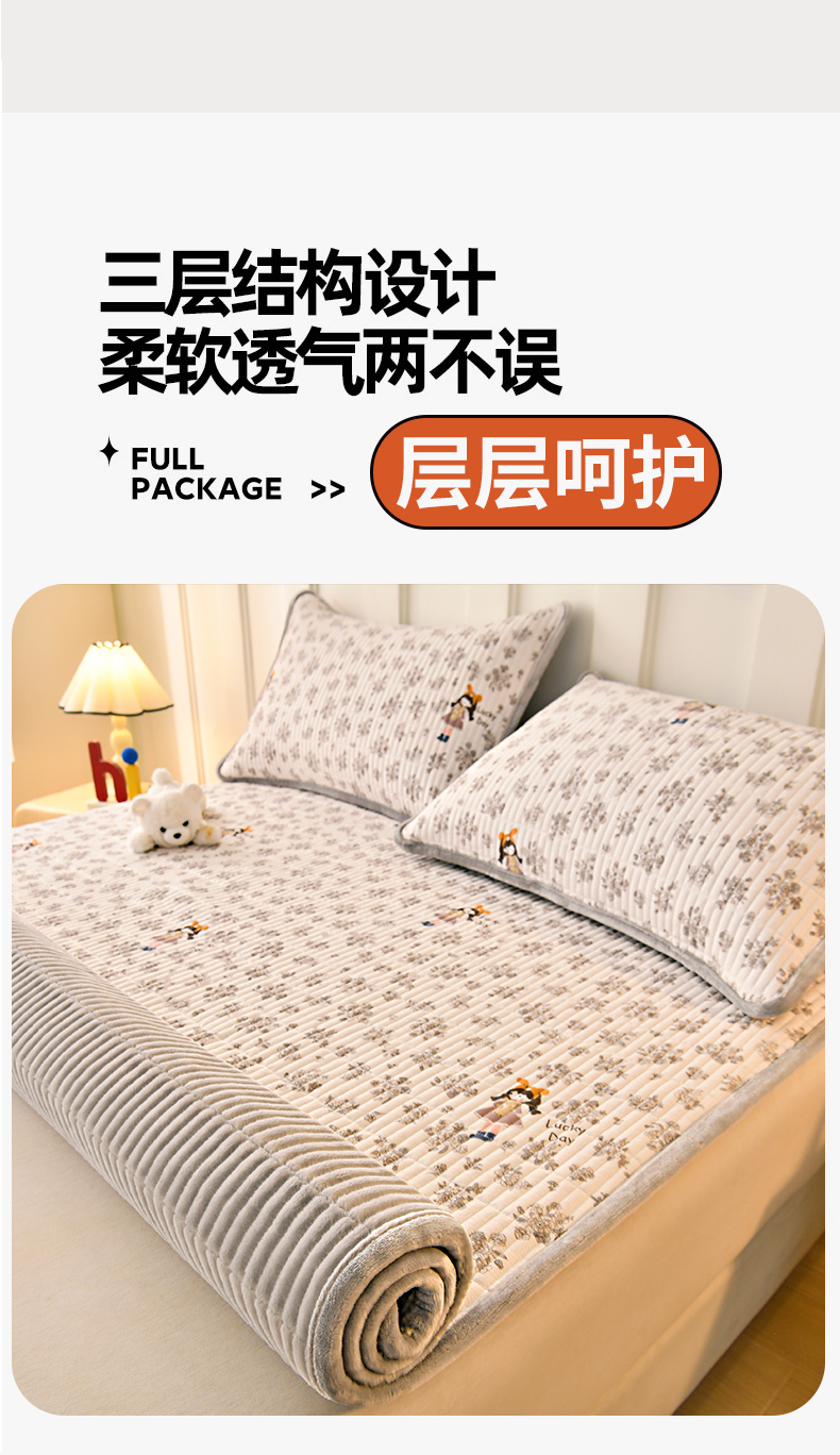 (总)悠米悠家 2025新款A类羊羔绒夹棉大豆床笠床垫,白色,粉色,灰色,橘色,咖色