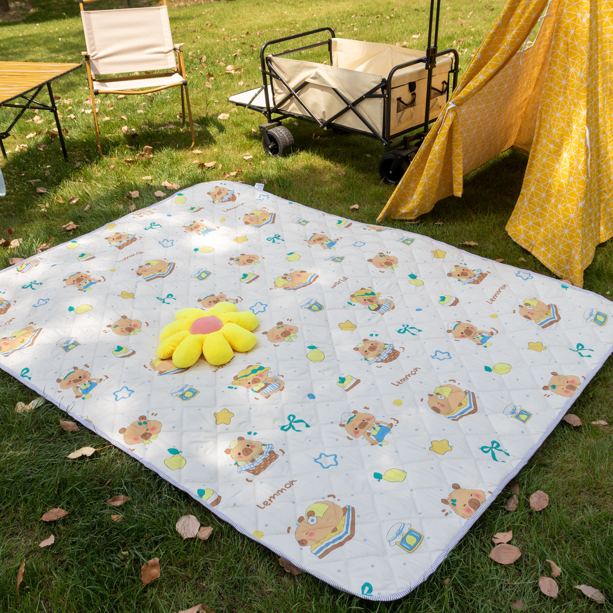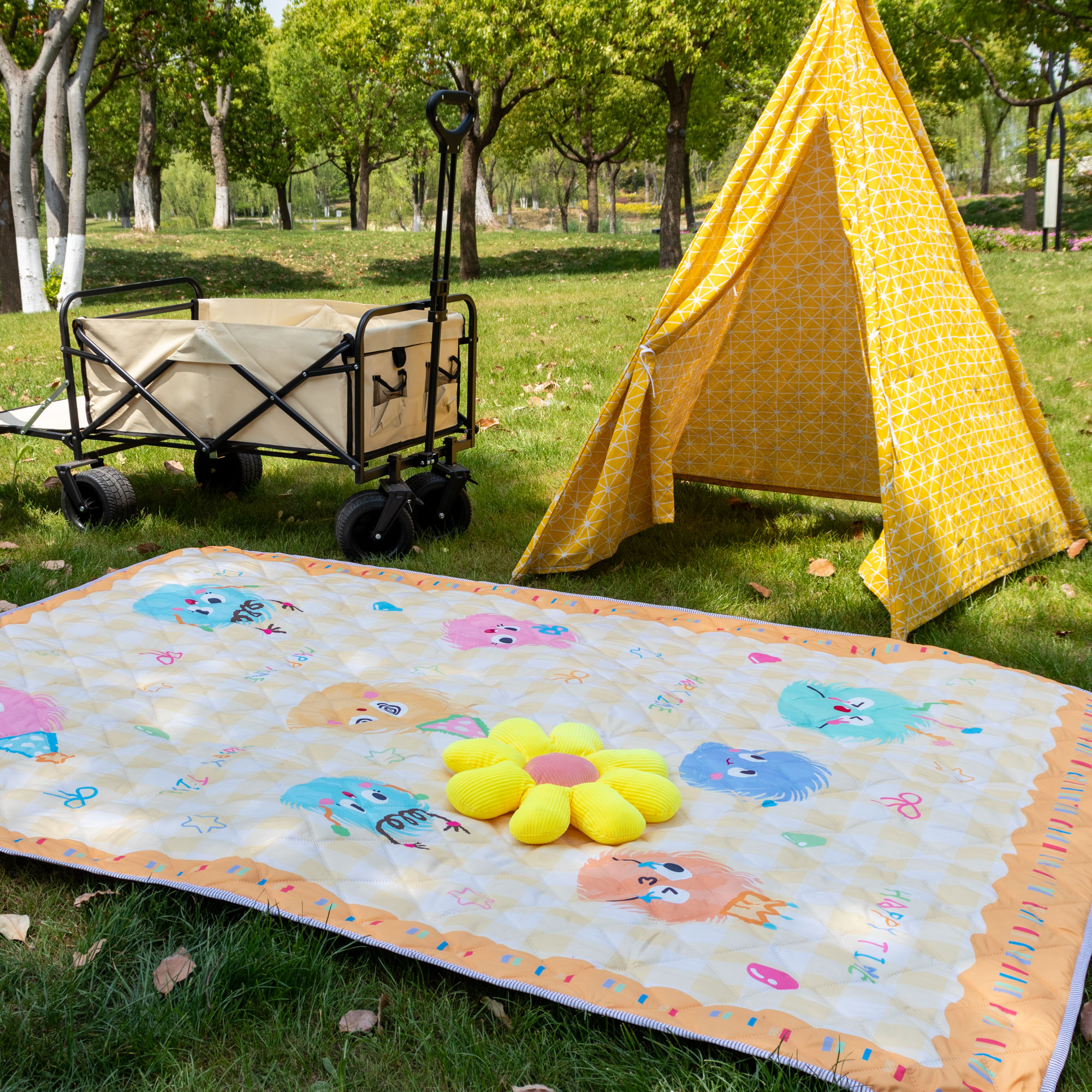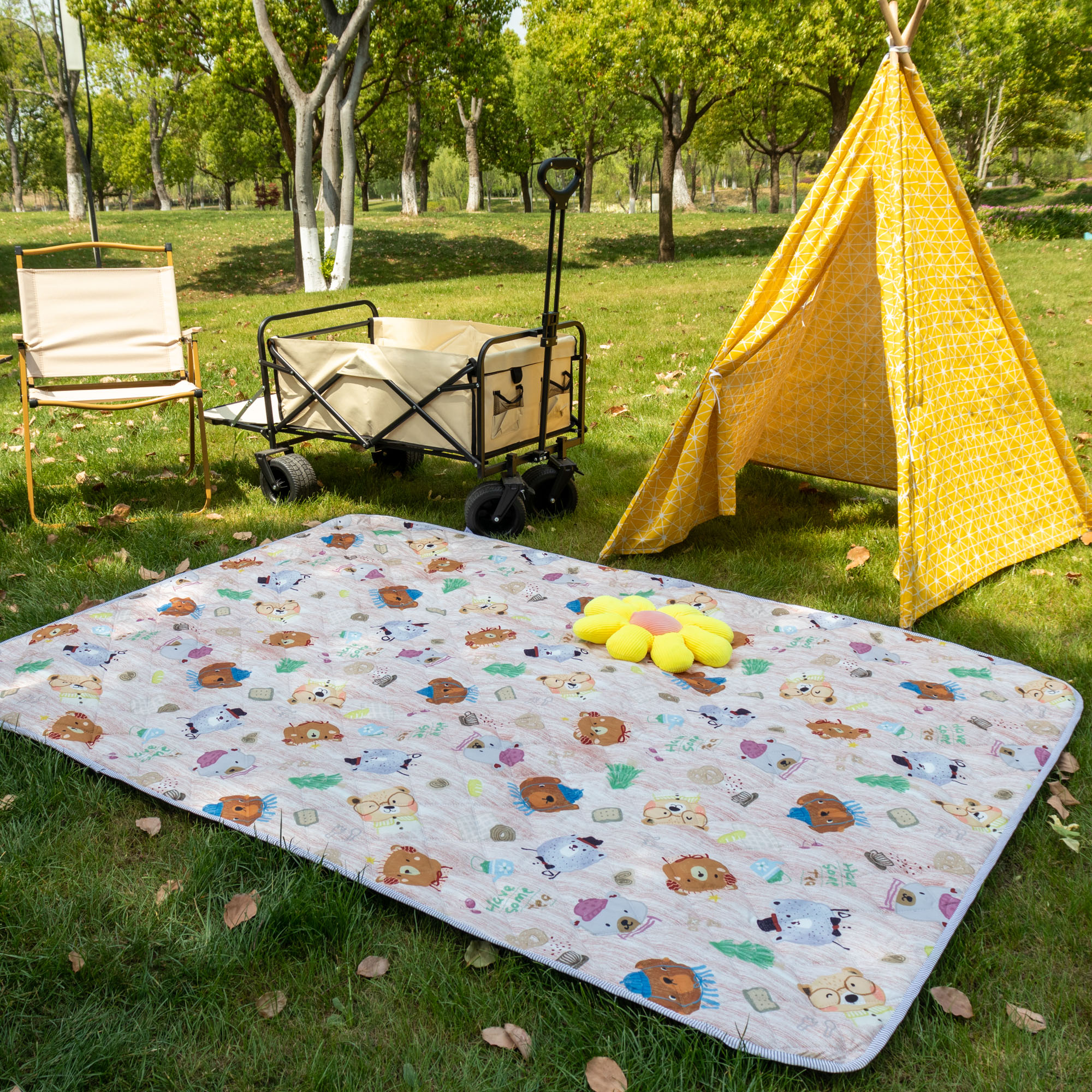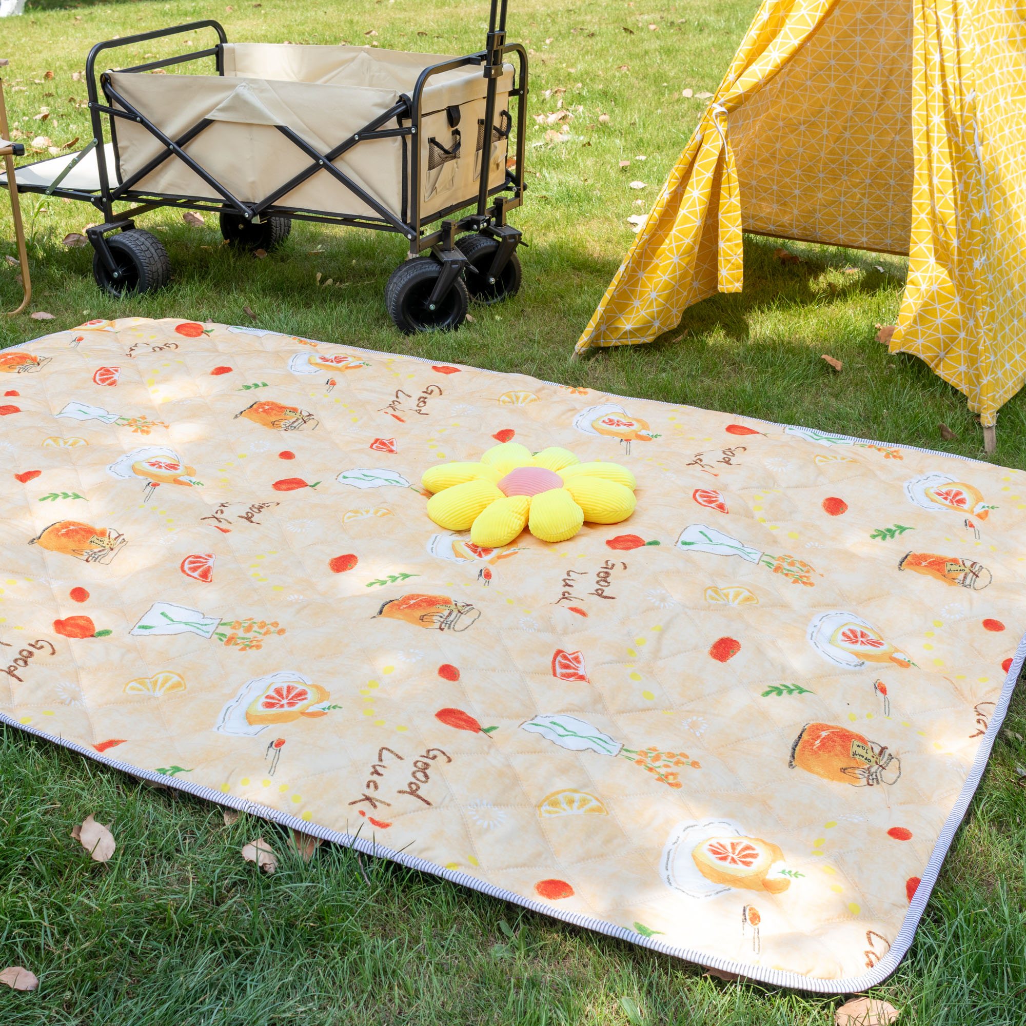 欣宜家纺 2025新款铝底防水野餐垫防潮宝宝地垫爬爬垫露营垫帐篷垫 格子毛球