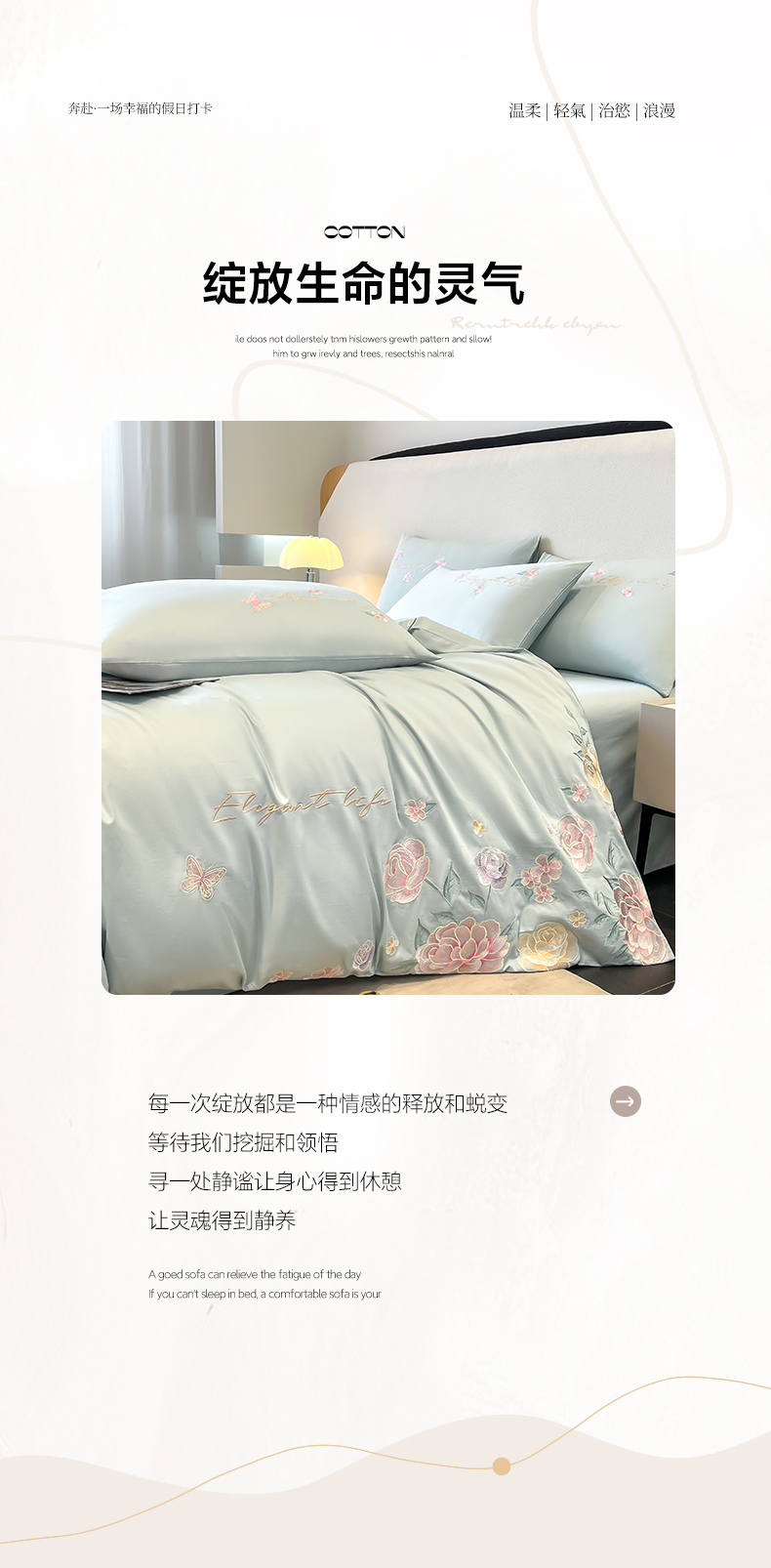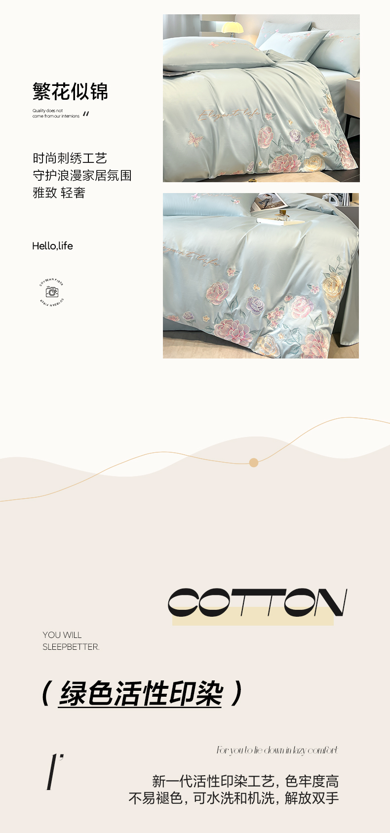 (总)欣宜家纺 2026春夏新款A类60支长绒棉刺绣四件套--蝶纷飞系列,蝶纷飞-粉,蝶纷飞-紫,蝶纷飞-蓝,蝶纷飞-绿