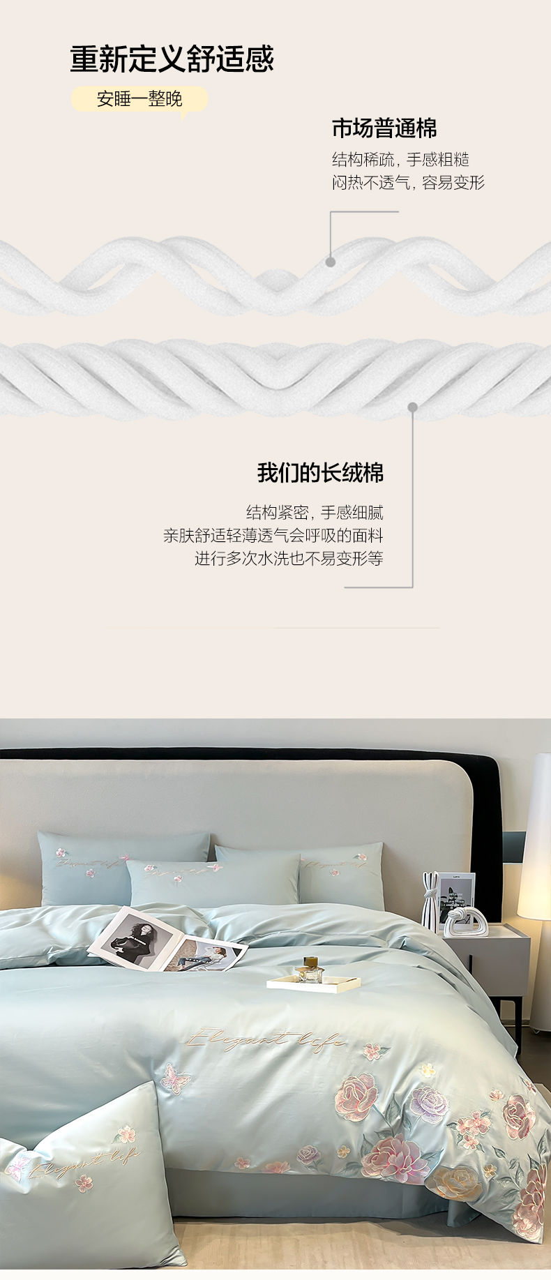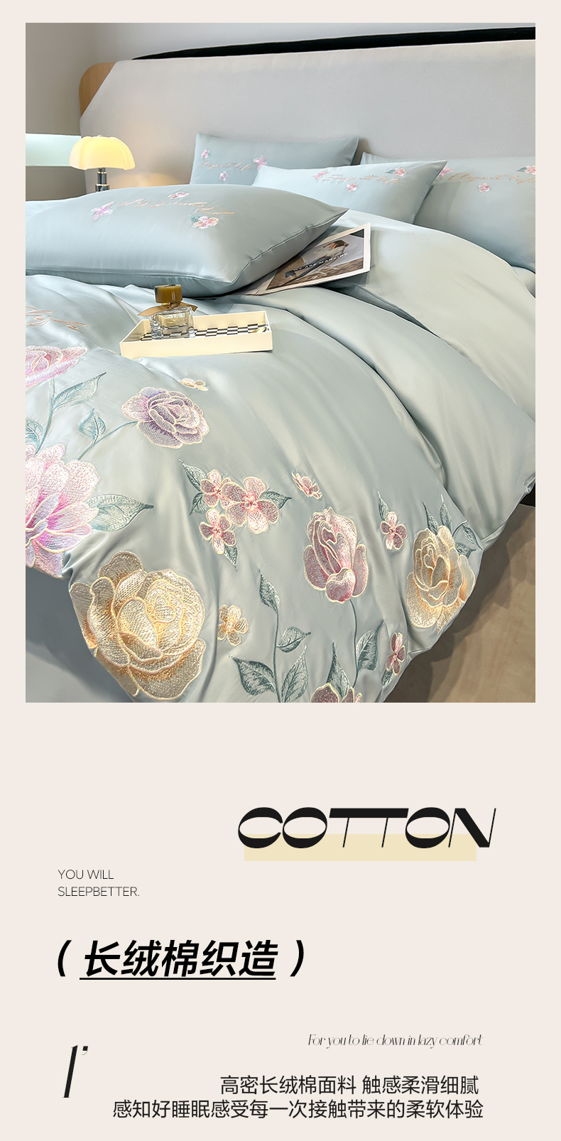 (总)欣宜家纺 2026春夏新款60支A类新疆长绒棉刺绣轻奢风四件套,樱花-白粉,樱花-清香绿,樱花-少女粉,樱花-天天蓝,樱花-香芋紫
