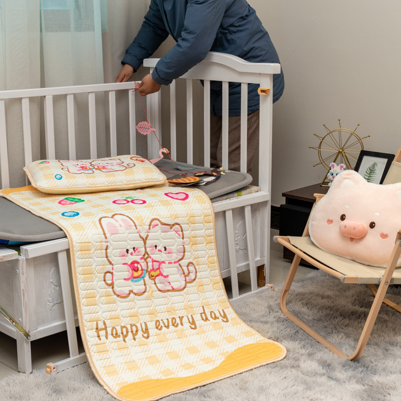 欣宜家纺 2025新款母婴级儿童乳胶凉席空调席 绿格小熊