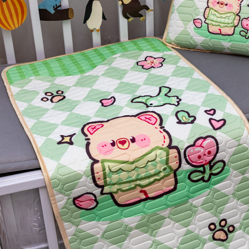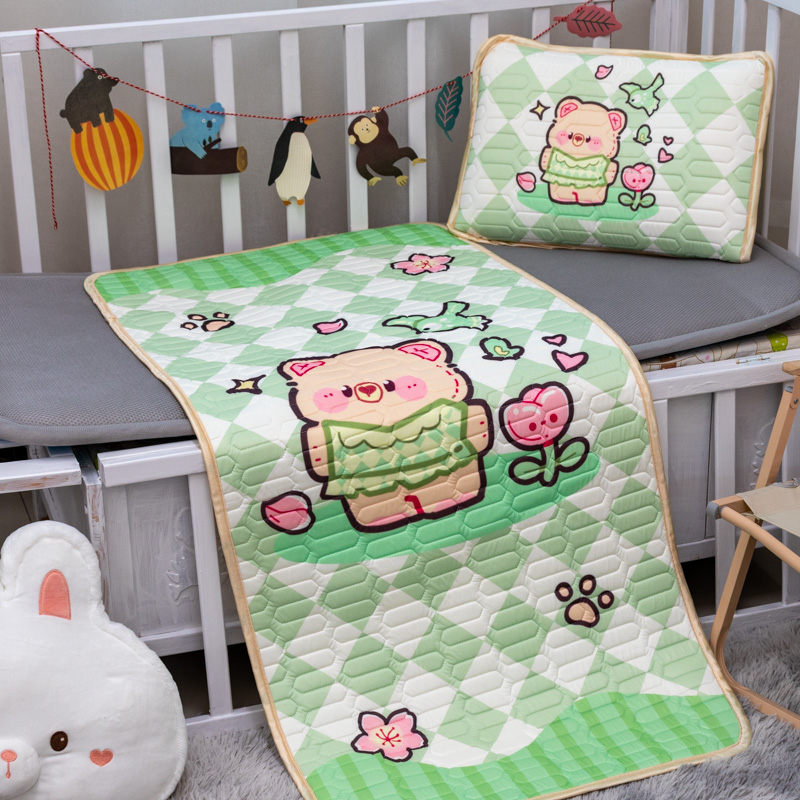 商品名称:欣宜家纺 2025新款母婴级儿童乳胶凉席空调席 绿格小熊