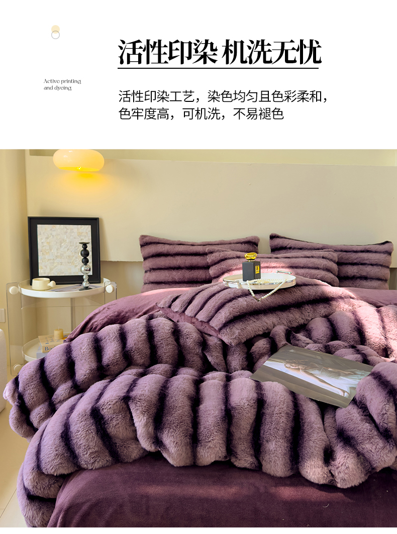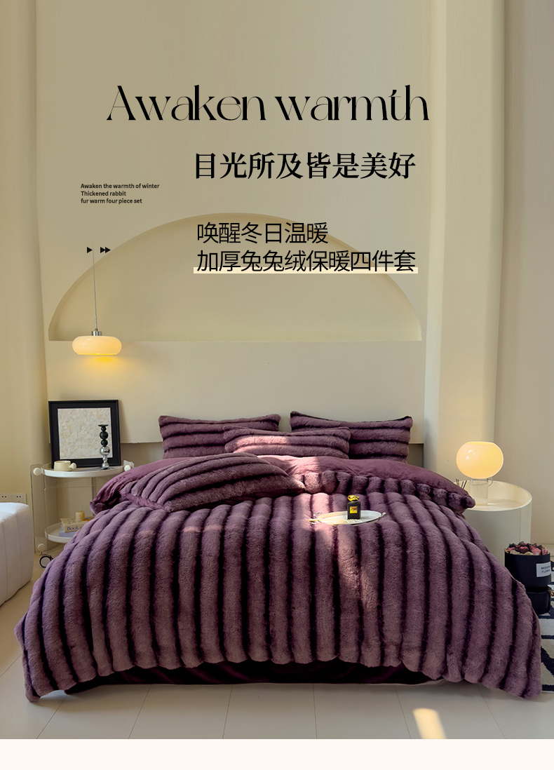欣宜家纺 2025新款兔兔绒牛奶绒加厚兔毛保暖四件套 深紫
