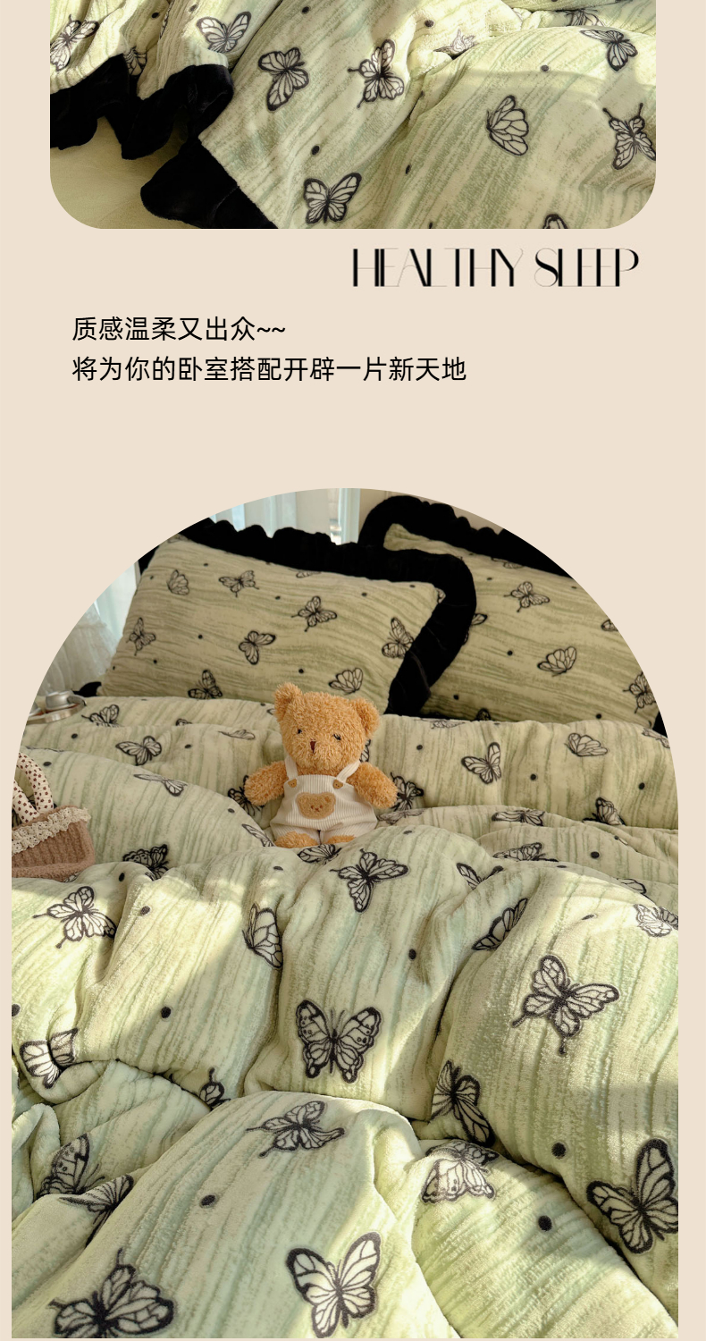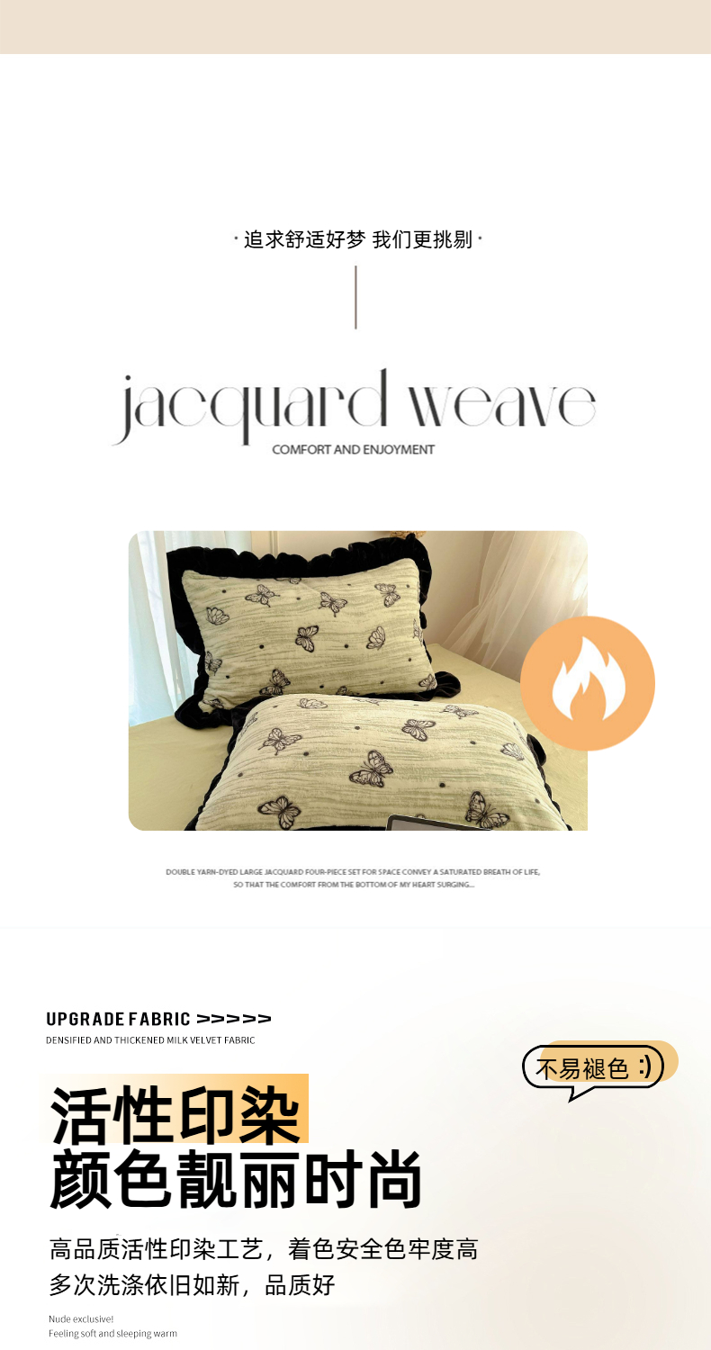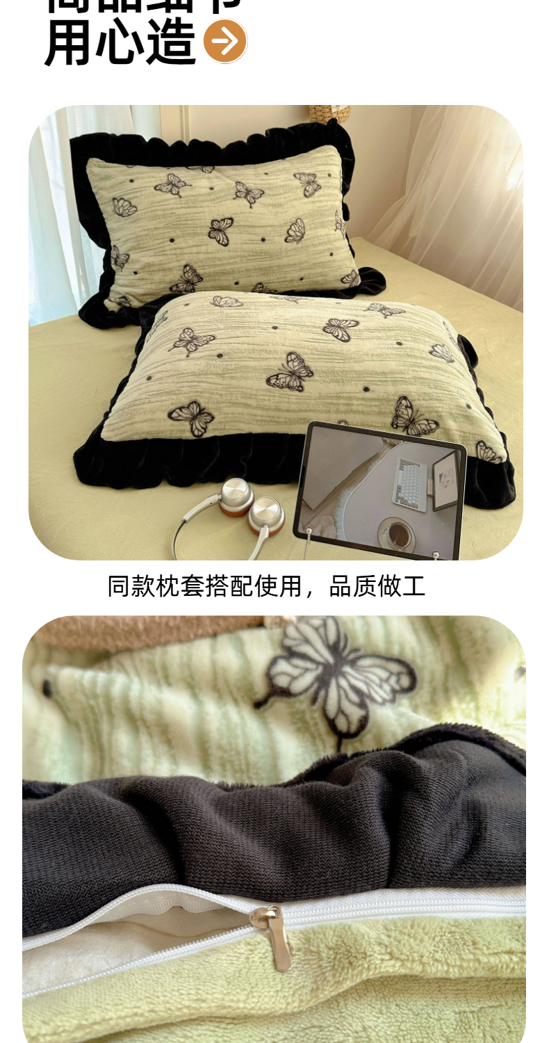 欣宜家纺 2025新款蝴蝶烂花牛奶绒雕花绒花边款四件套 黑蝴蝶-绿