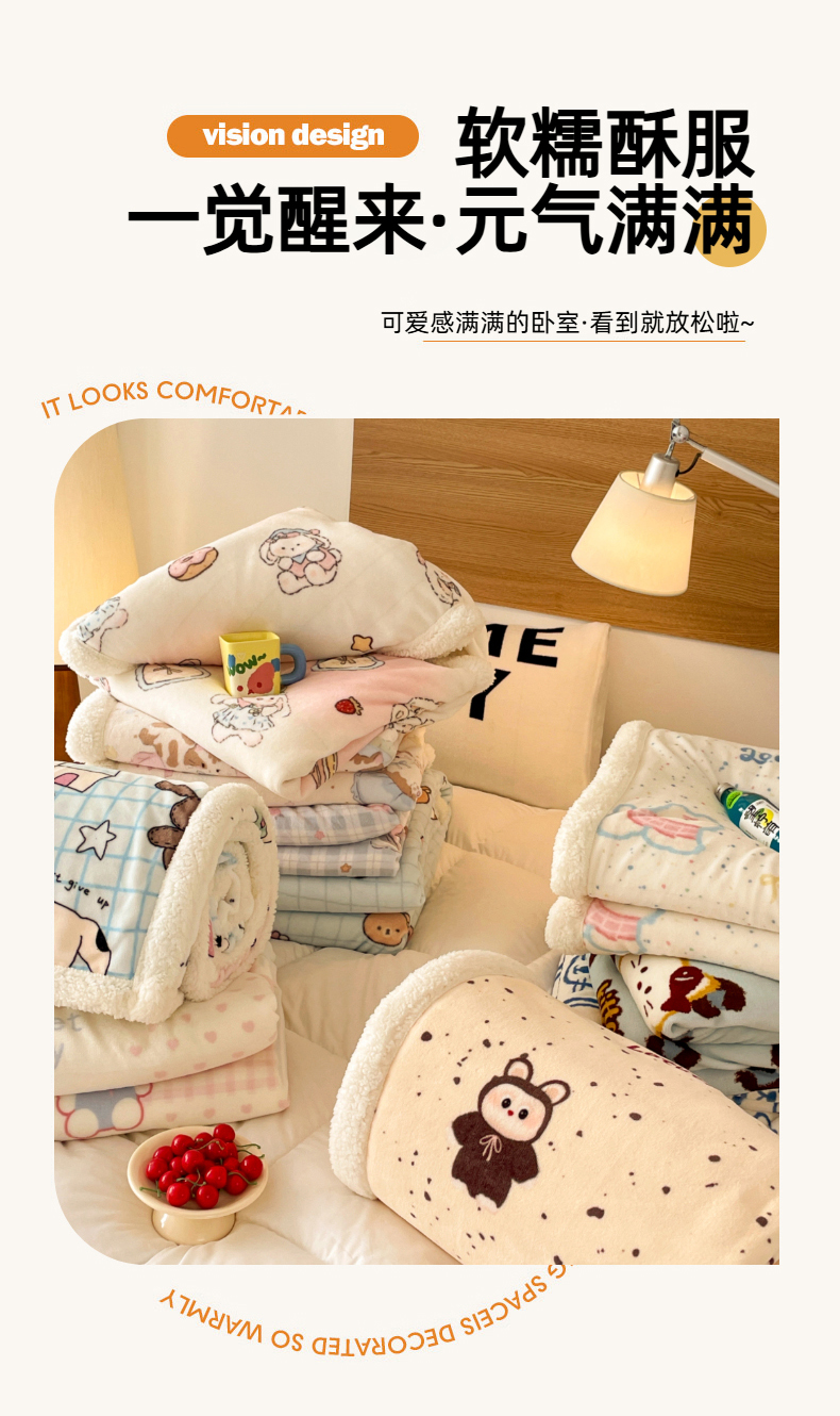 商品名称:(总)欣宜家纺 2025新款印花牛奶绒羊羔绒盖毯毛毯午休毯卡通多功能沙发毯