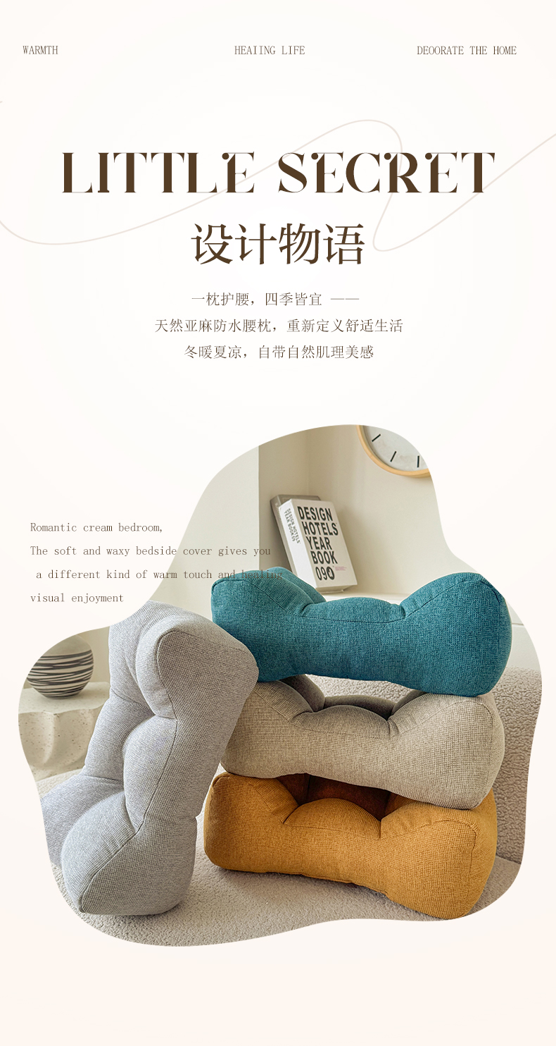 (总)囍莱家纺 2026新款亚麻生活防水腰靠(不供1688)