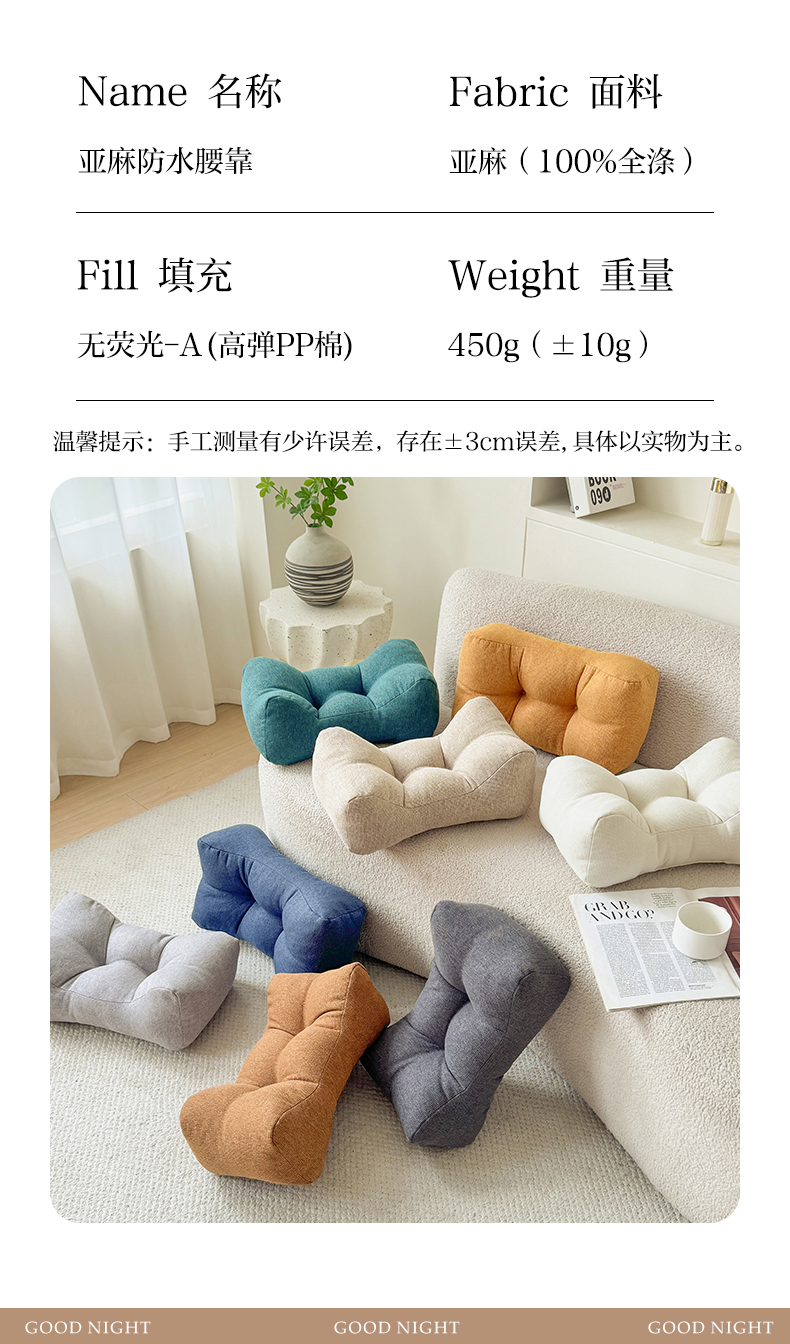 商品名称:(总)囍莱家纺 2026新款亚麻生活防水腰靠(不供1688)