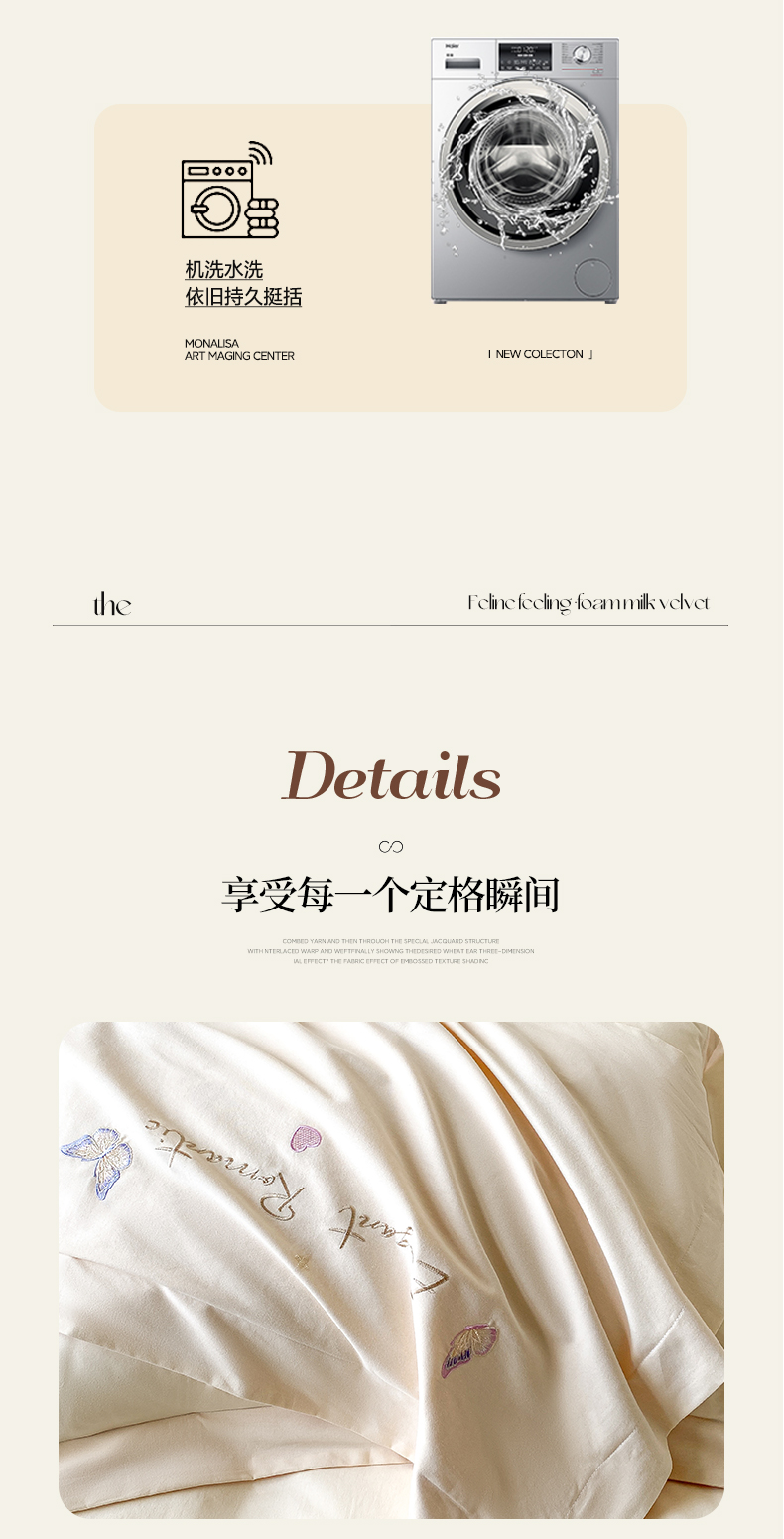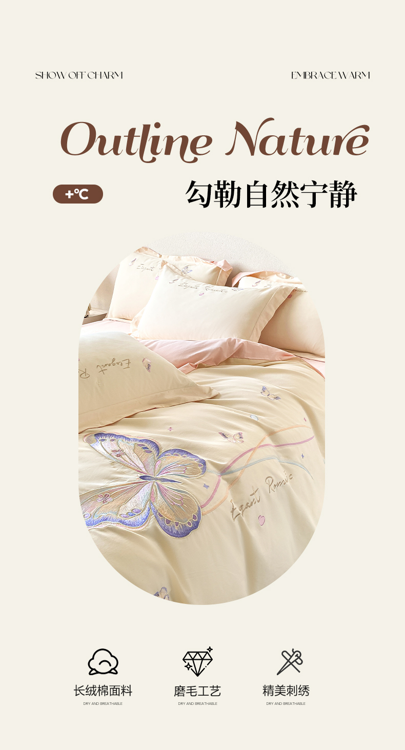 商品名称:欣宜家纺 2025新款秋冬纯棉全棉长绒棉磨毛刺绣床上四件套高端礼盒-蝶町系列(含买家秀) 蝶町-白粉