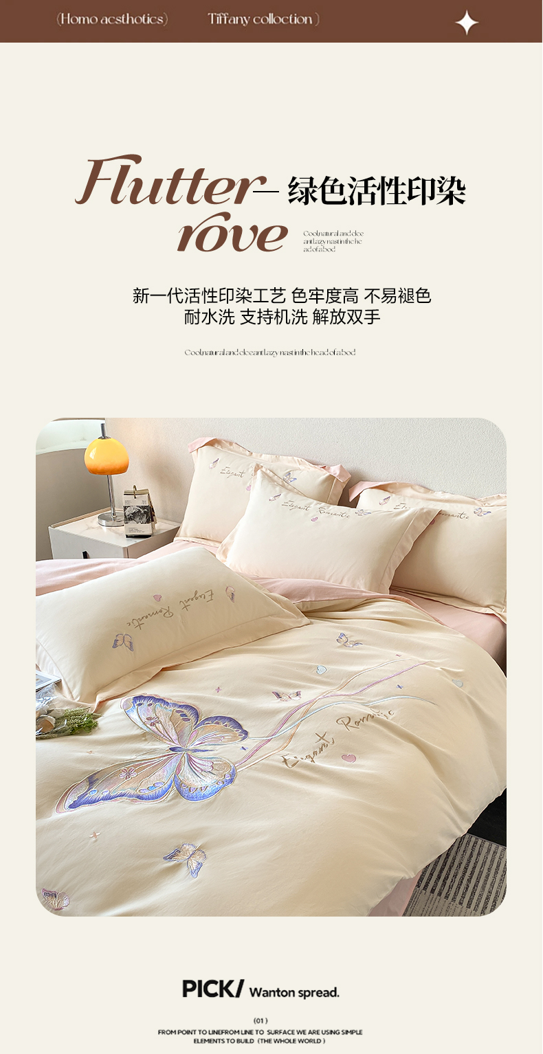 (总)欣宜家纺 2026春夏新款A类60支长绒棉刺绣四件套--蝶纷飞系列,蝶纷飞-粉,蝶纷飞-紫,蝶纷飞-蓝,蝶纷飞-绿