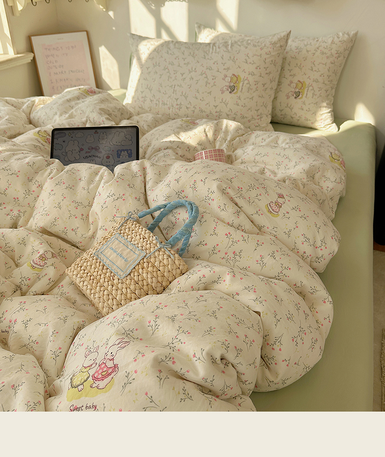 当前位置: 91家纺网 > 商品网购 > 床品套件 > 四件套 > 水洗棉四件套 > 沐芷 2026 【提供买家秀】水洗棉四件套A类简约小清新床上用品床笠款被套床单三件套被罩卡通可爱 森系田园兔