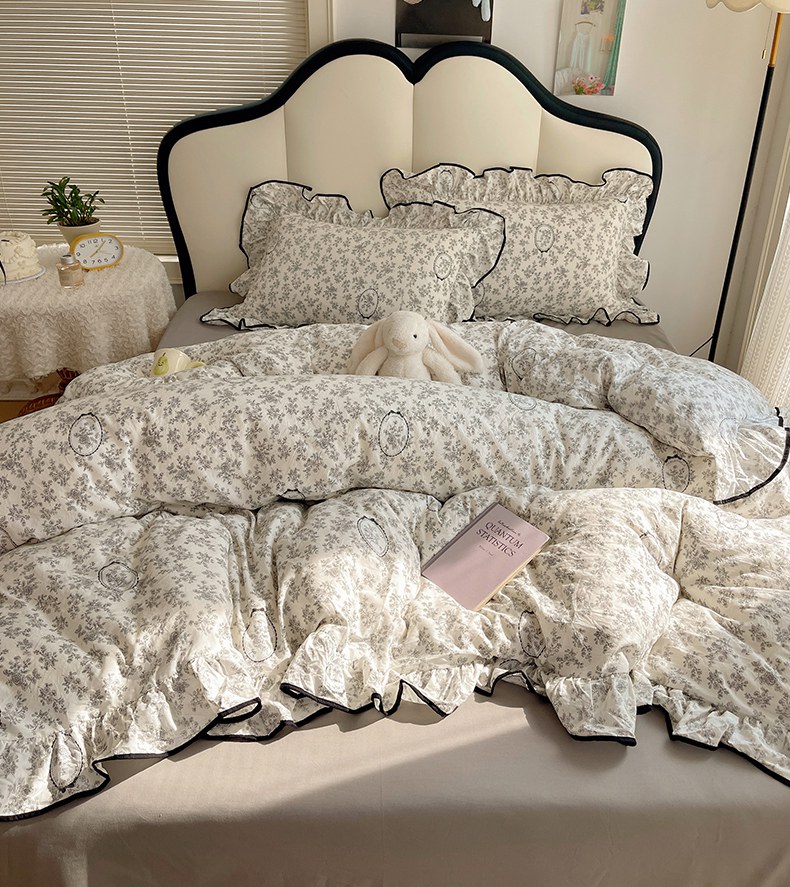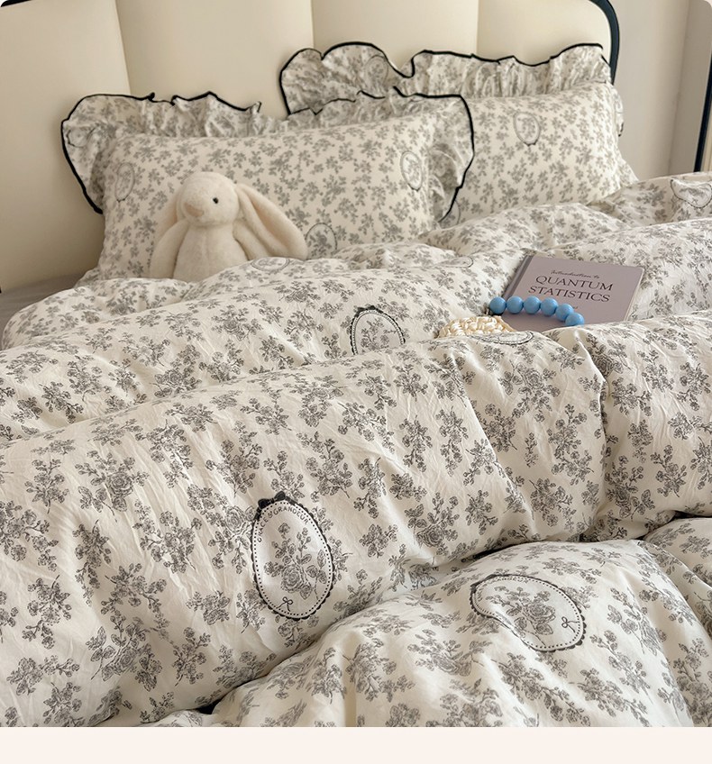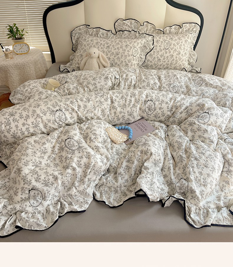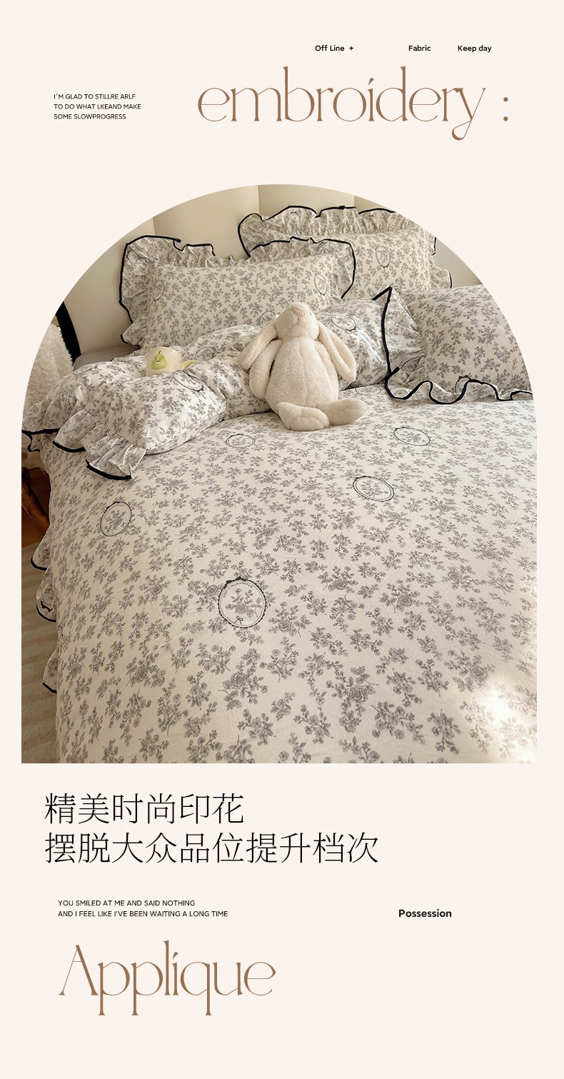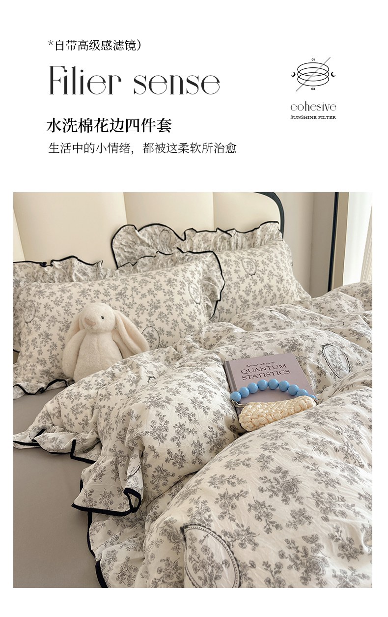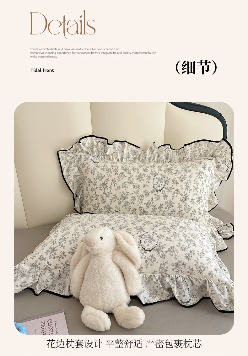 当前位置: 91家纺网 > 商品网购 > 床品套件 > 四件套 > 水洗棉四件套 > 韩巢家纺 2026新款水洗棉花边款四件套 花时宇间【大花边款】
