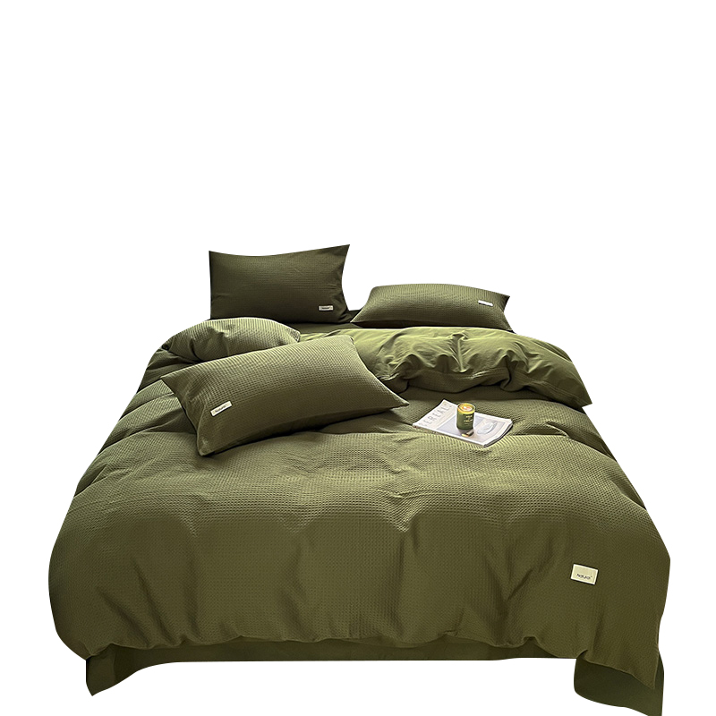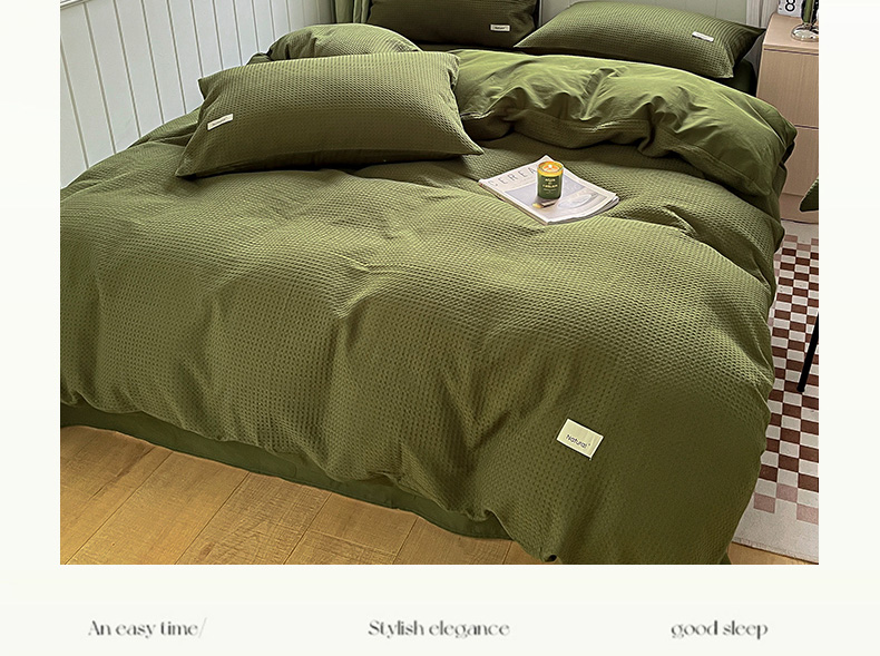 当前位置: 91家纺网 > 商品网购 > 床品套件 > 四件套 > 全棉普通四件套 > 琪格格纺织 2026新款纯棉色织肌理纹提花华夫格纯棉轻奢简约款四件套 华夫格-橄榄绿