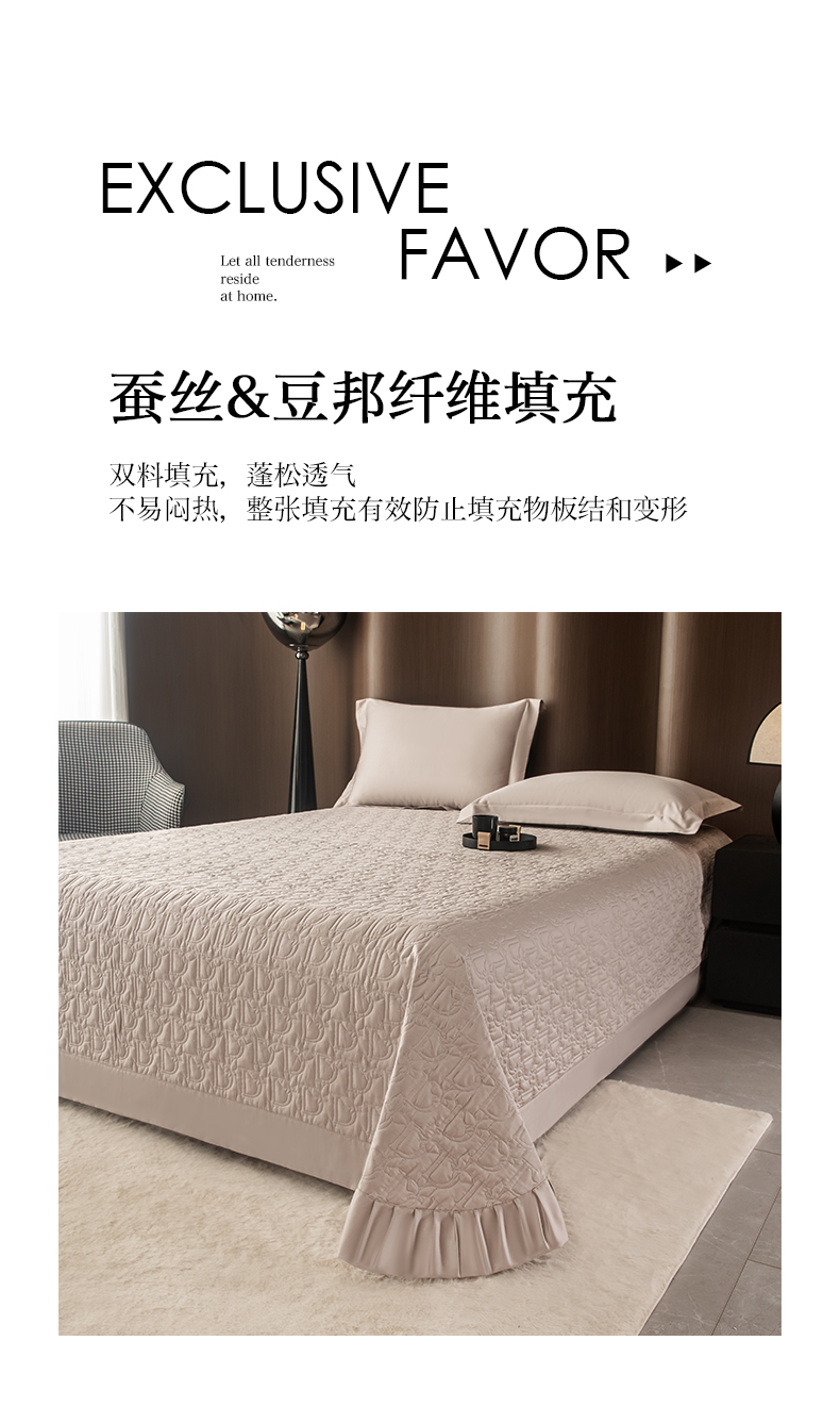 (总)金喜 2025新款100支全棉蚕丝床盖-风格二,白桃,粉灰,灰咖,木槿绿,霞光紫