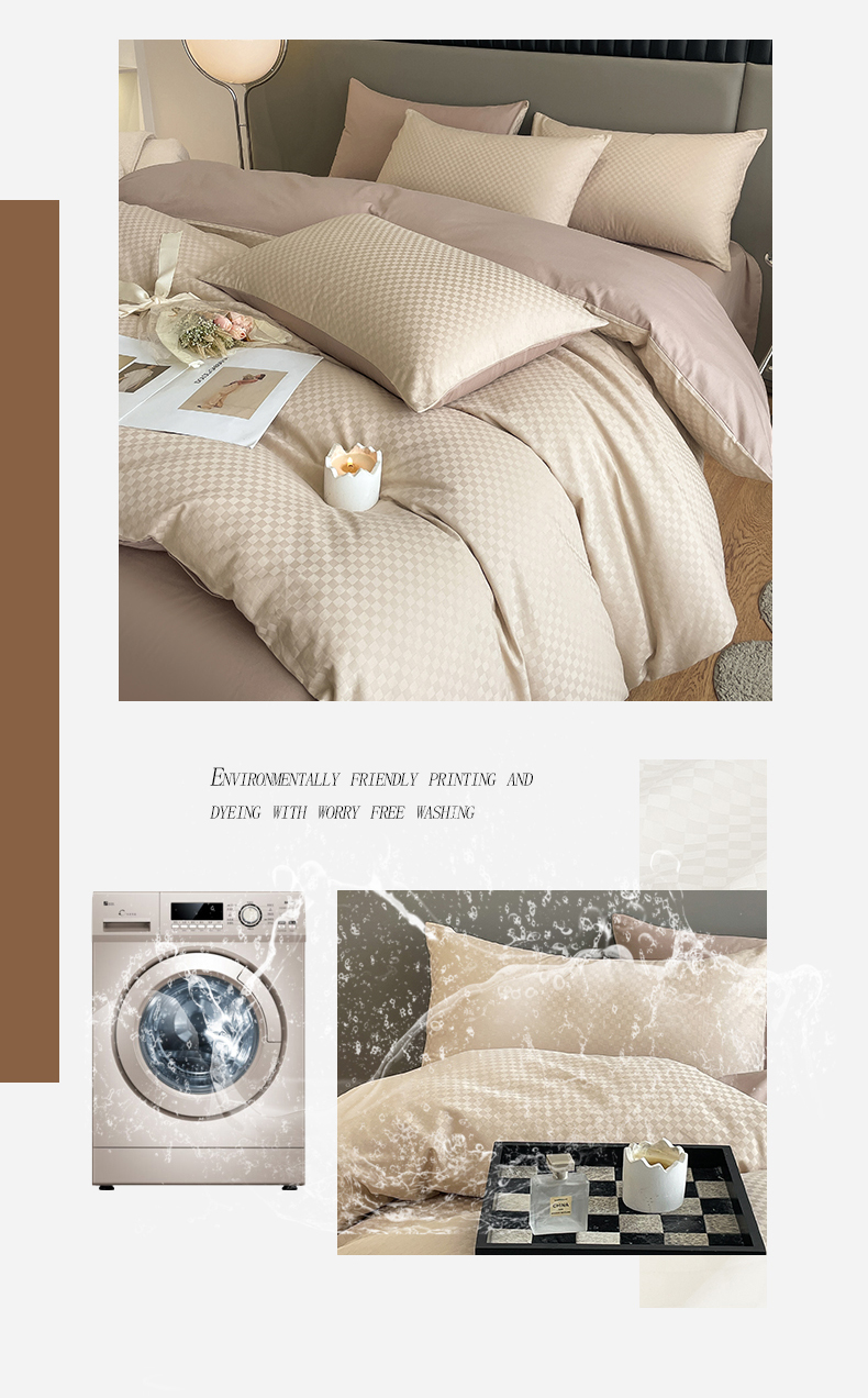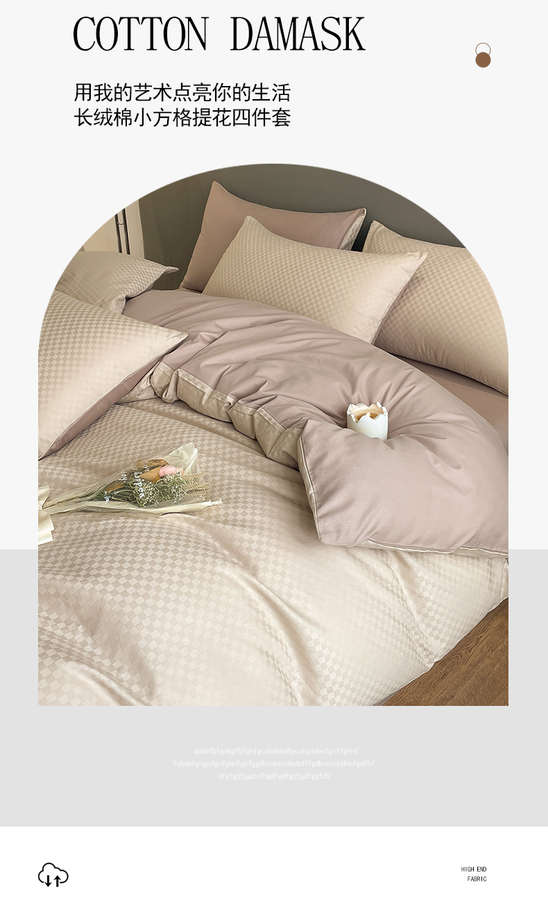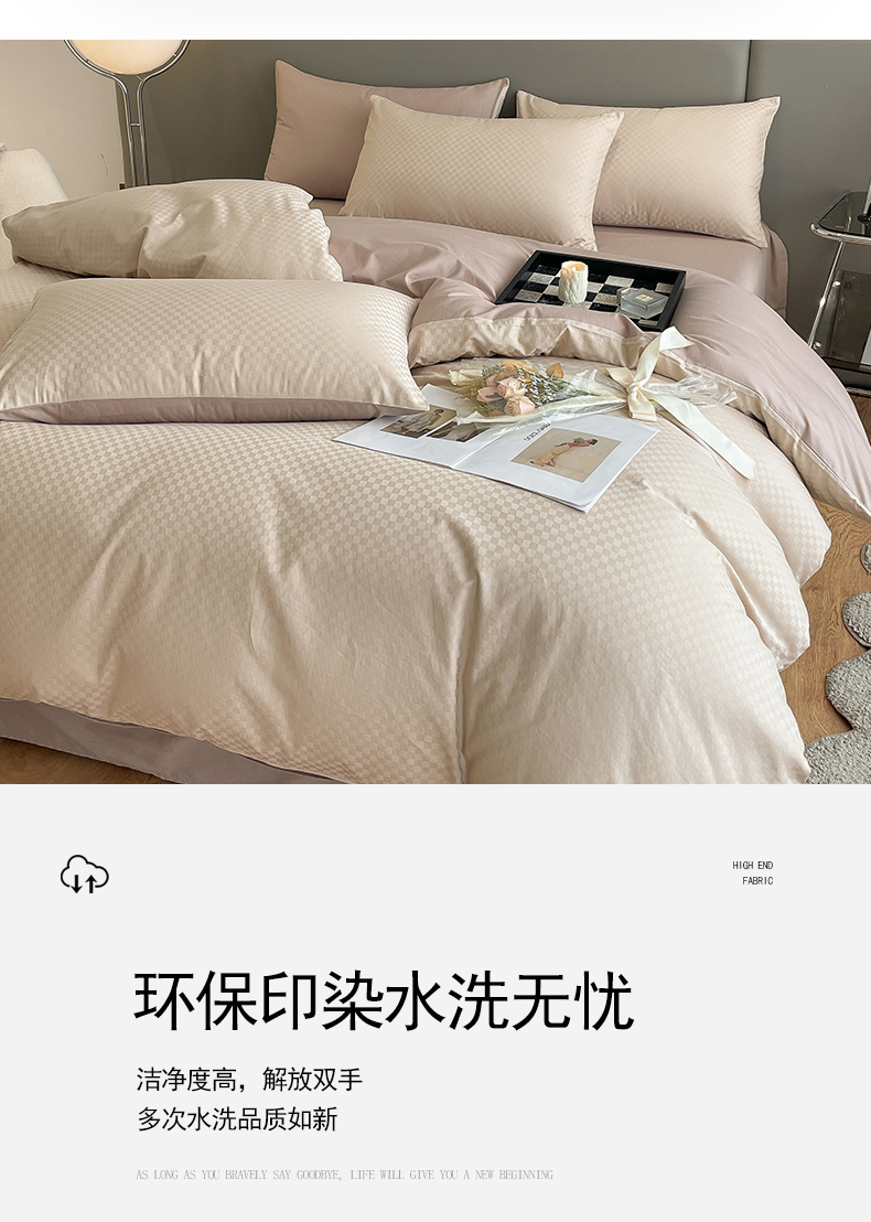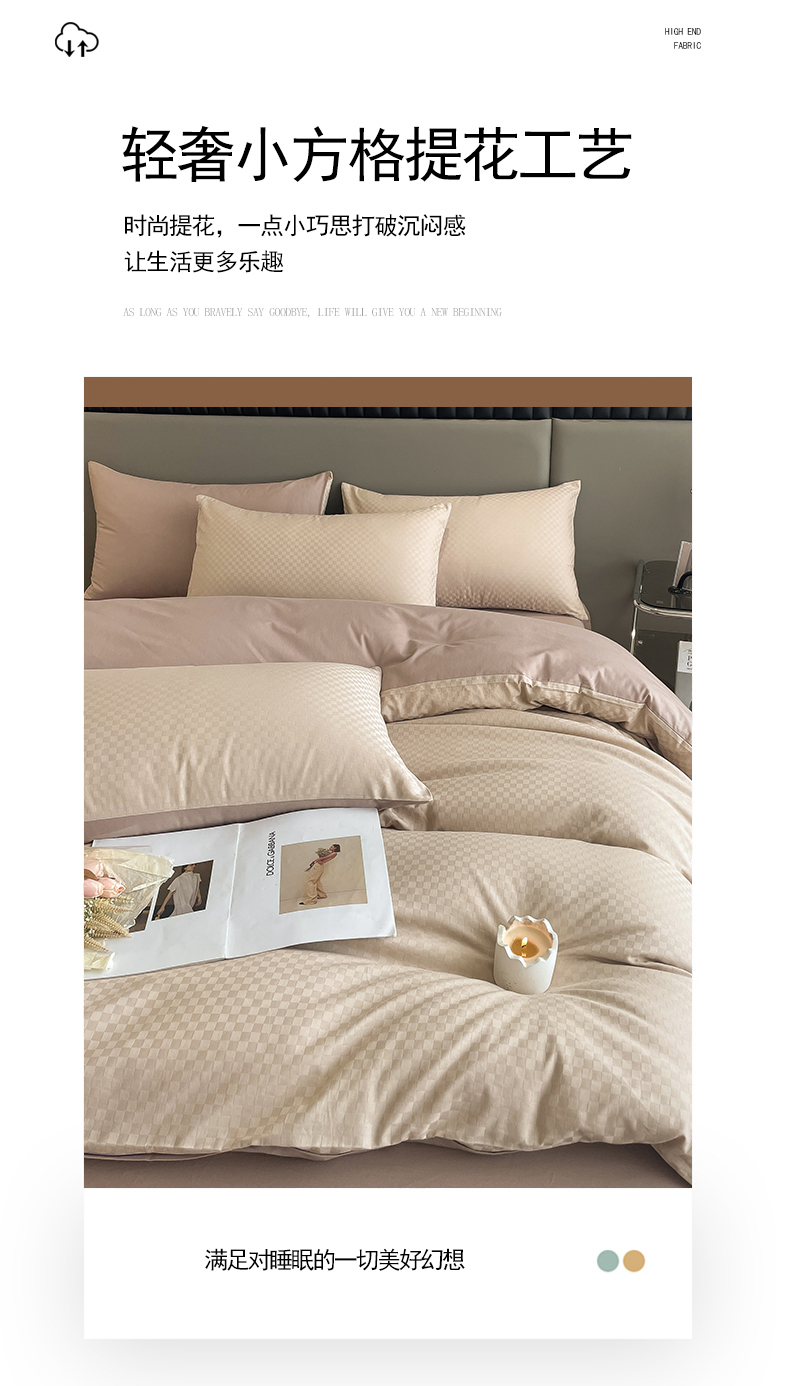 当前位置: 91家纺网 > 商品网购 > 床品套件 > 四件套 > 长绒棉四件套 > 琪格格纺织 2026新款轻奢长绒棉纯棉高级感提花方格酒店名宿居家四件套 60长绒棉-杏仁+摩卡棕