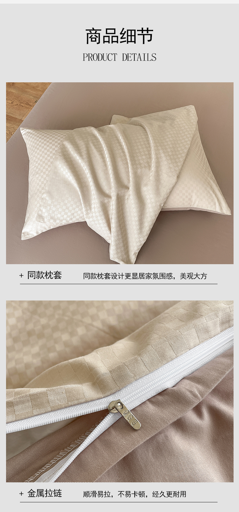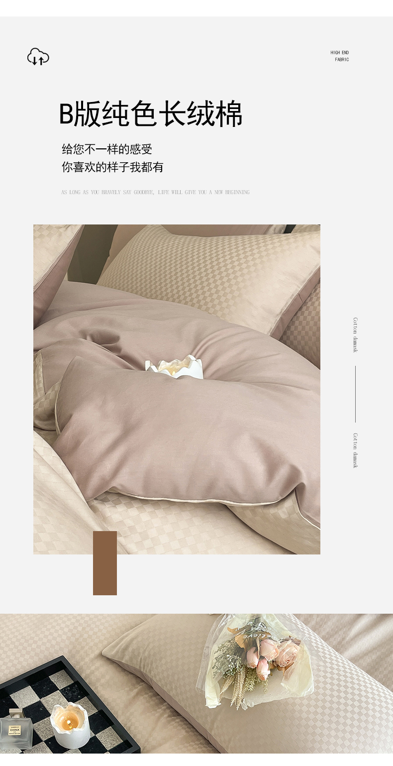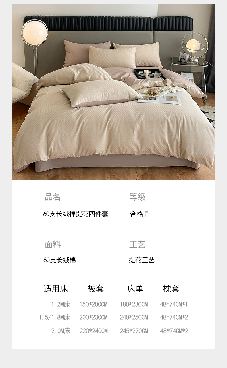 当前位置: 91家纺网 > 商品网购 > 床品套件 > 四件套 > 长绒棉四件套 > 琪格格纺织 2026新款轻奢长绒棉纯棉高级感提花方格酒店名宿居家四件套 60长绒棉-杏仁+摩卡棕