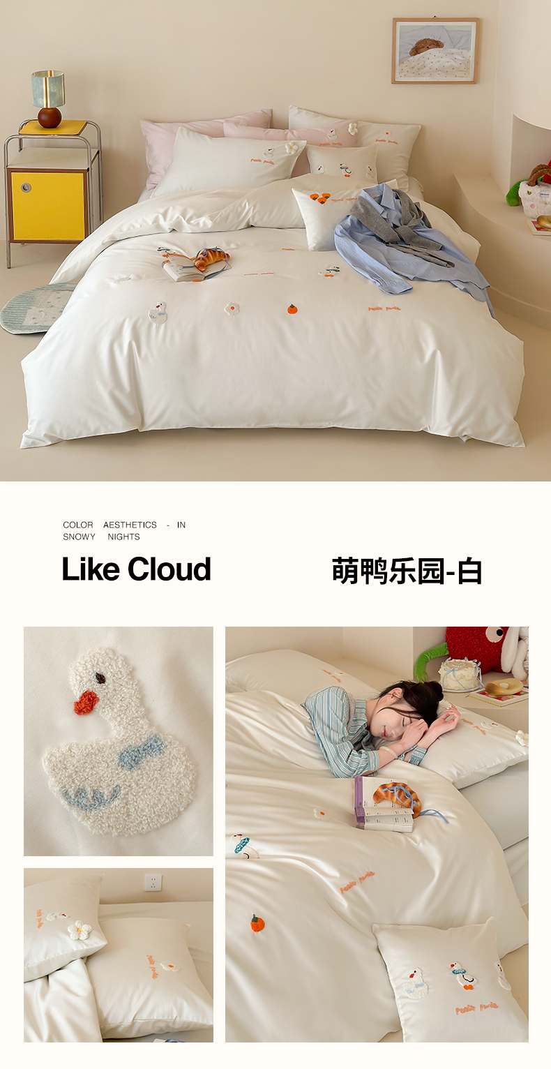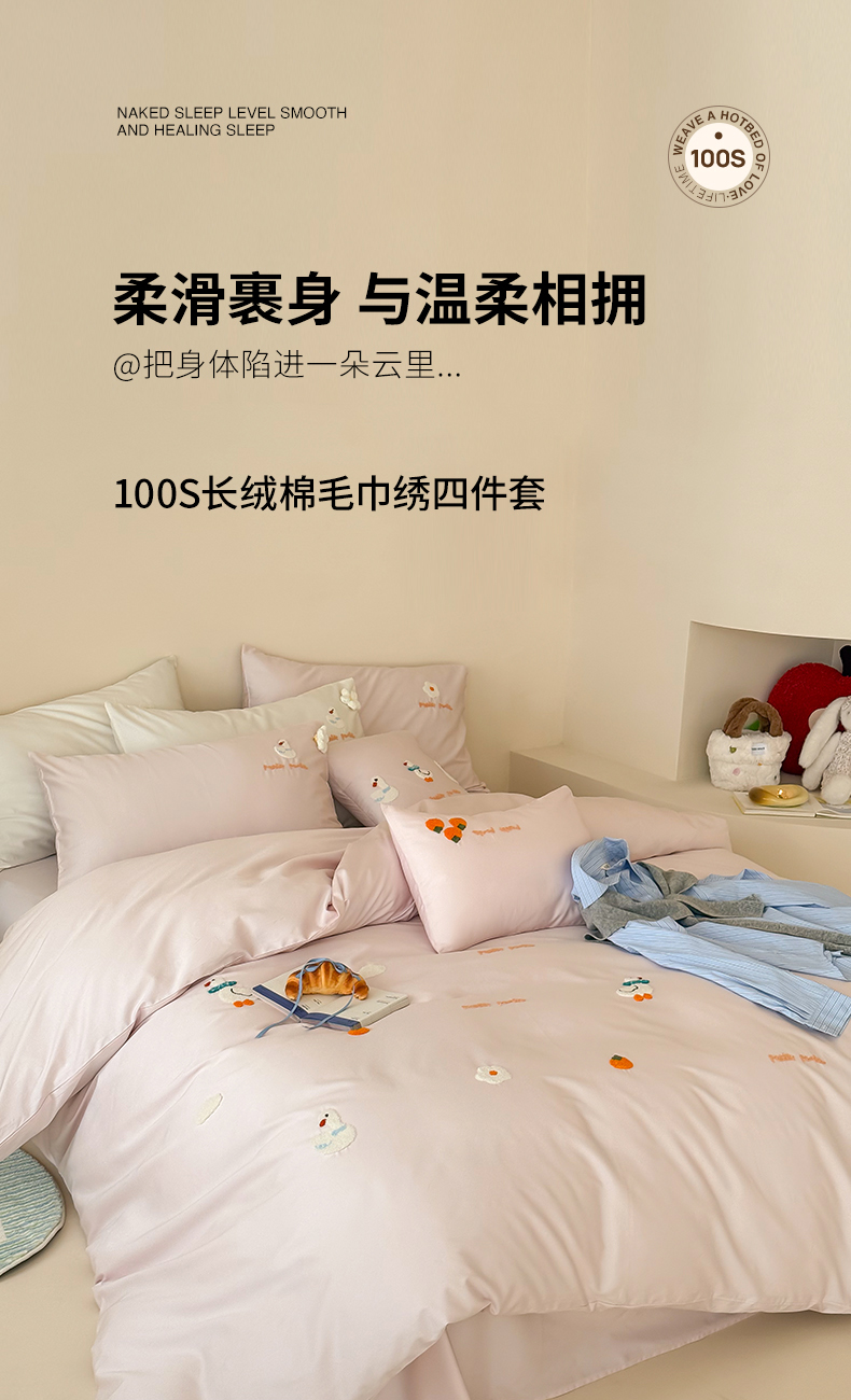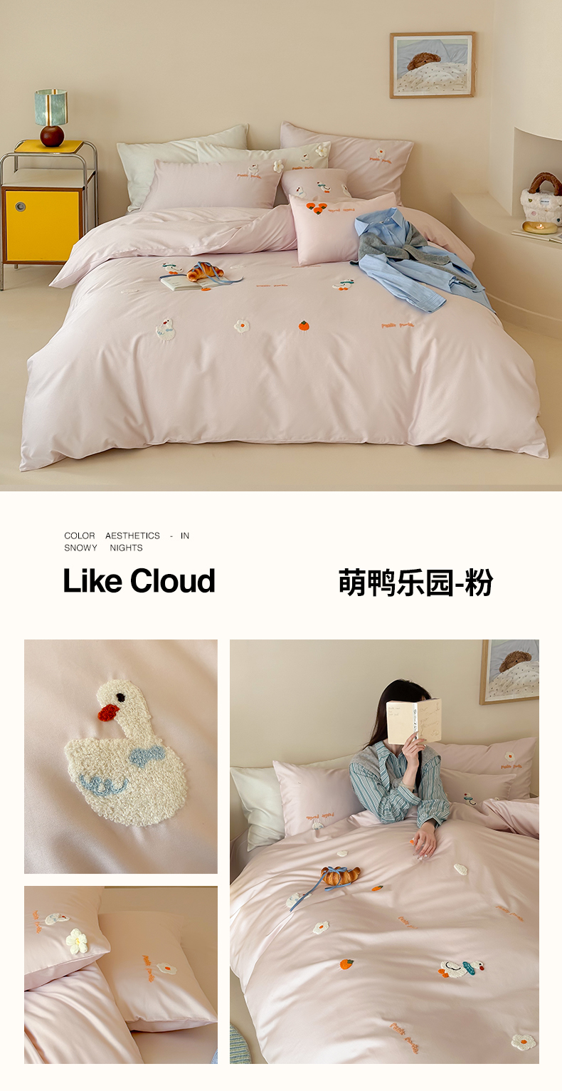当前位置: 91家纺网 > 商品网购 > 床品套件 > 四件套 > 长绒棉四件套 > 极简 2026新款长绒棉毛巾绣四件套-萌鸭乐园(需要买家秀,联系门市客服。小号控价258标准288加大308) 萌鸭乐园-粉