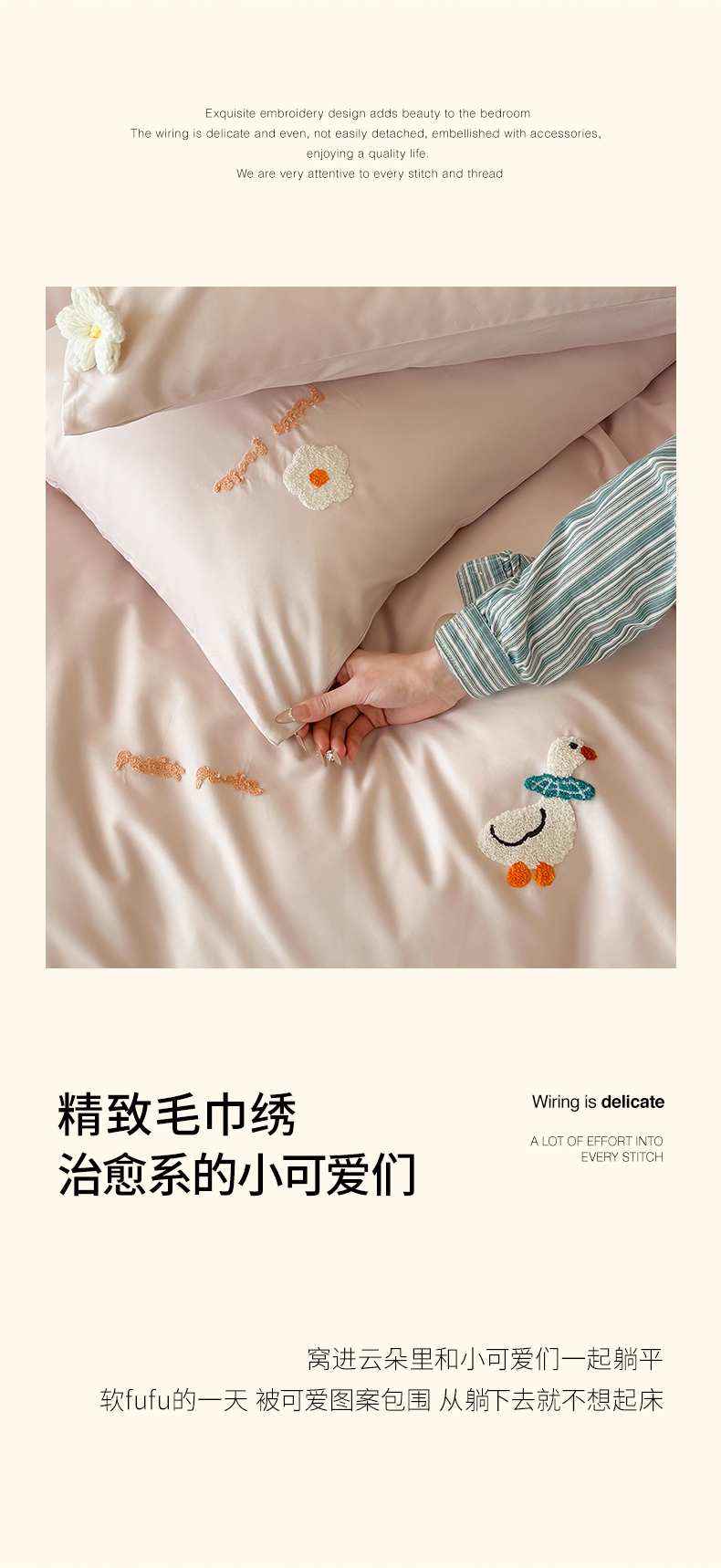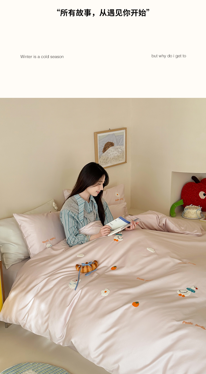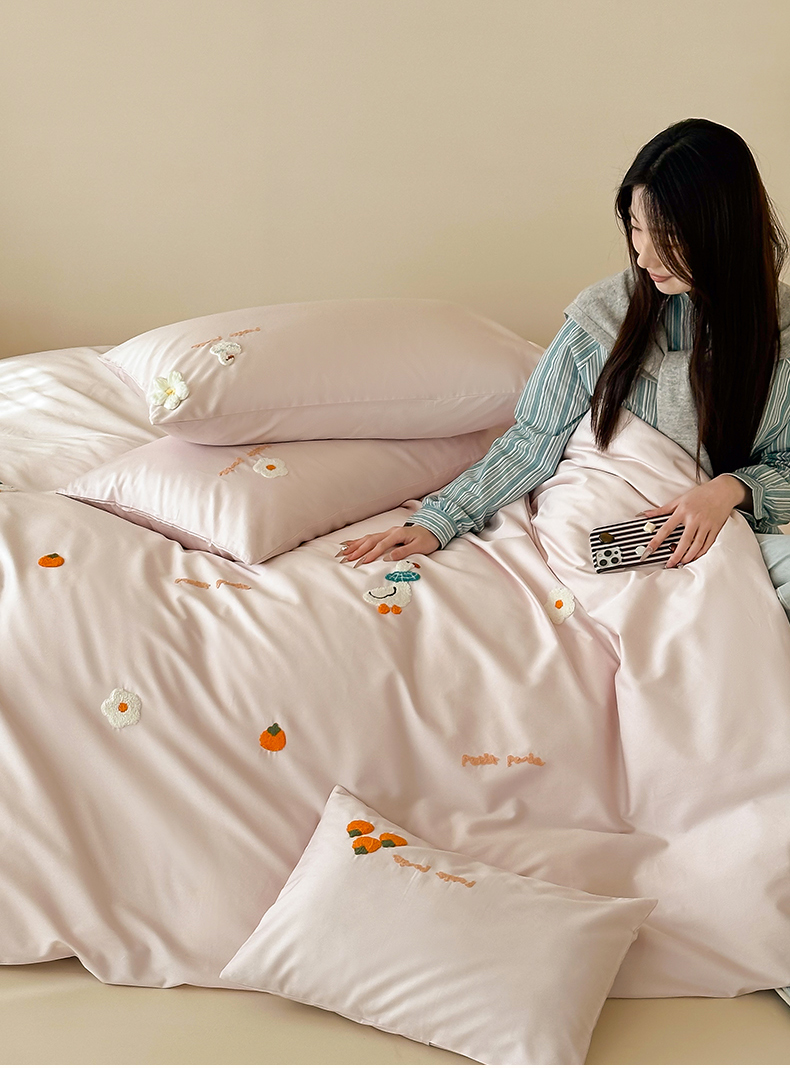 当前位置: 91家纺网 > 商品网购 > 床品套件 > 四件套 > 长绒棉四件套 > 极简 2026新款长绒棉毛巾绣四件套-萌鸭乐园(需要买家秀,联系门市客服。小号控价258标准288加大308) 萌鸭乐园-粉