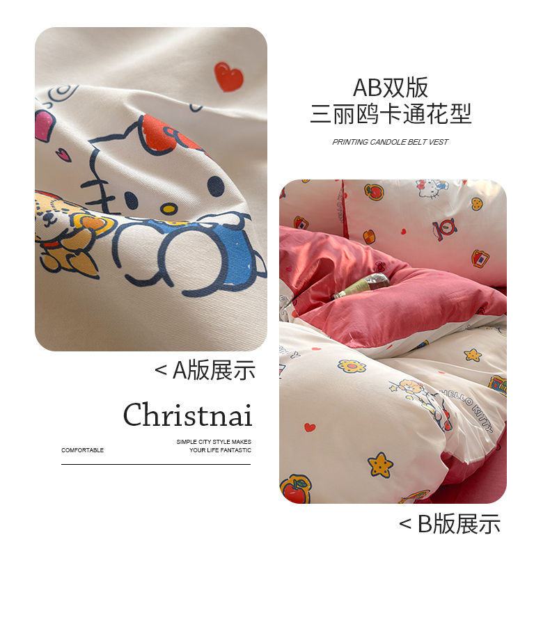 商品名称:曼之夏 2026新款全棉三丽鸥正版授权卡通四件套 凯蒂果果