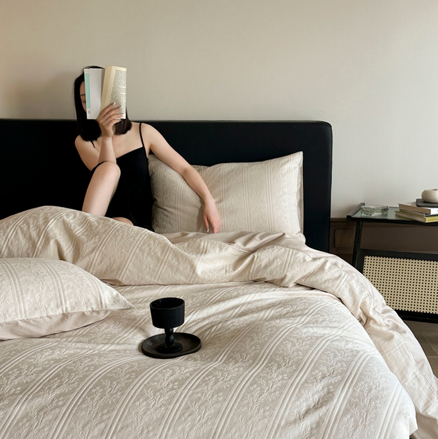 (总)宜代光年 2026新款厚织全棉大提花系列单被套,暗香疏影-浅咖,画谷,森蔓-奶白