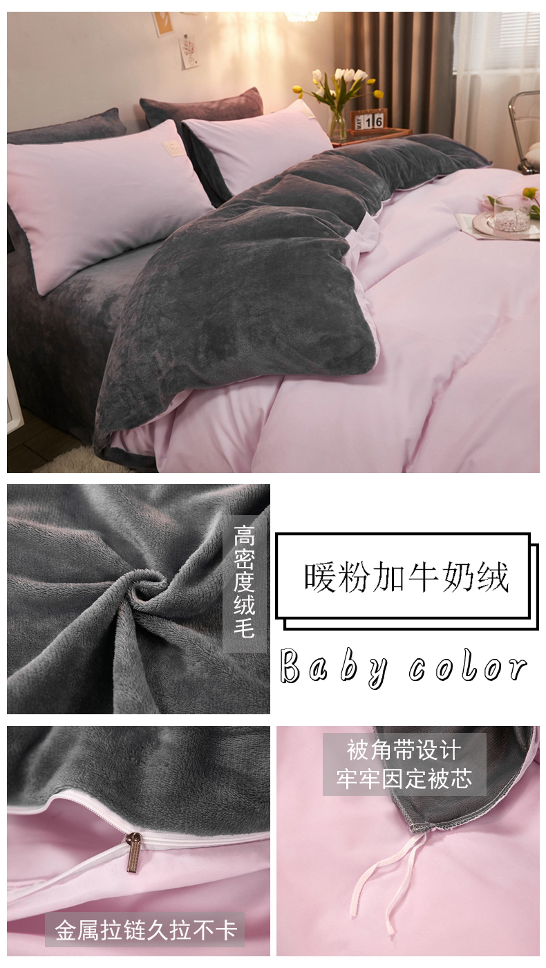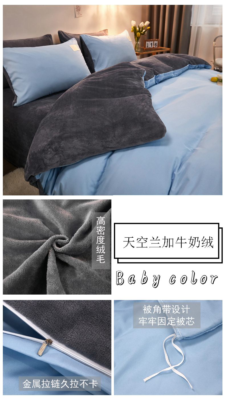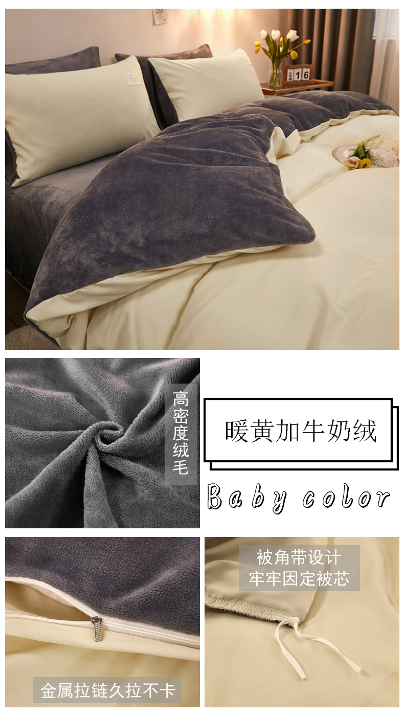 (总)啊雅家居 2026新款水洗棉牛奶绒三件套四件套,暖酱加牛奶绒,暖黄加牛奶绒,暖粉加牛奶绒,浅灰加牛奶绒,浅蓝灰加牛奶绒,暖咖加牛奶绒,克莱因蓝加牛奶绒,藏青加牛奶绒,深灰加牛奶绒,天空兰加牛奶绒