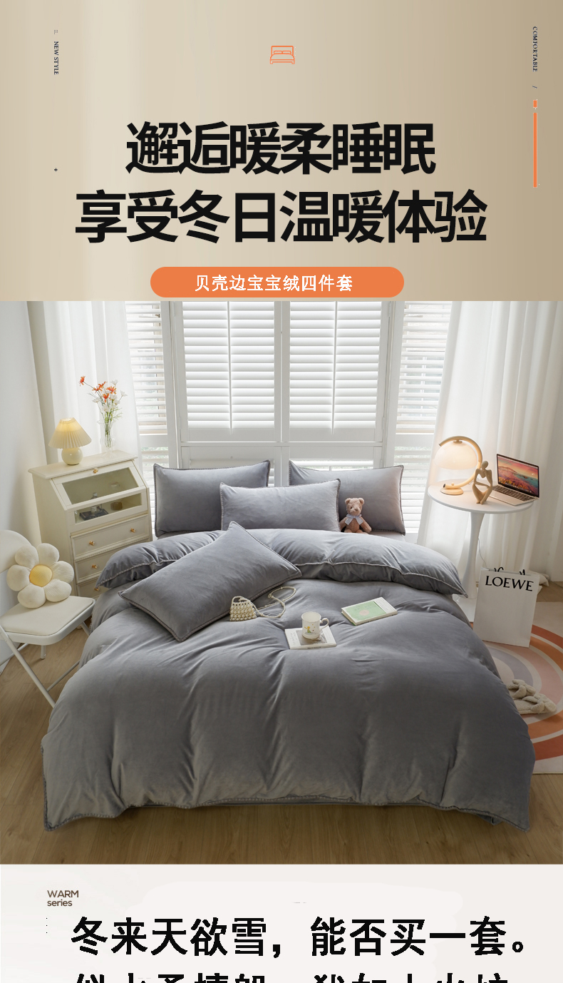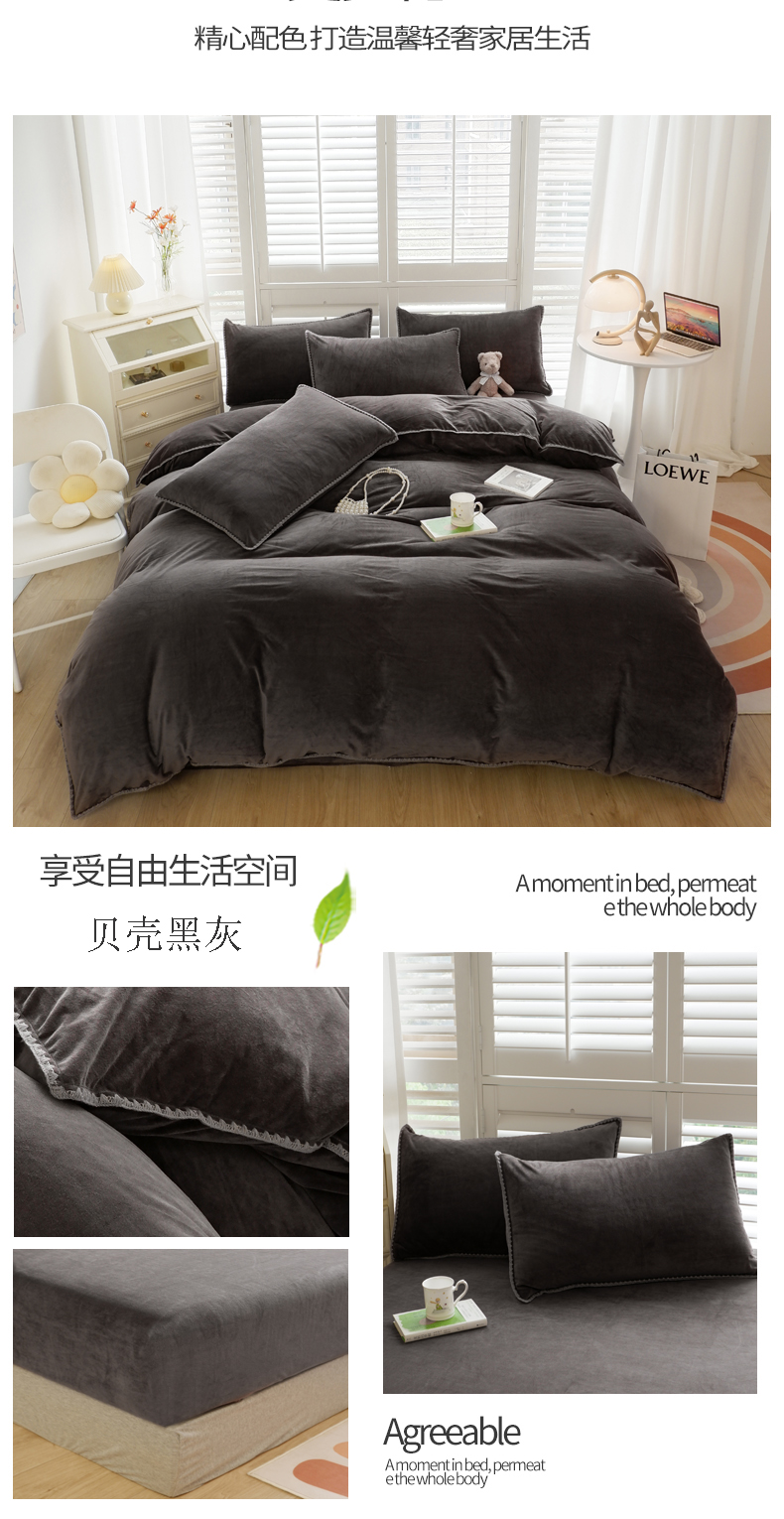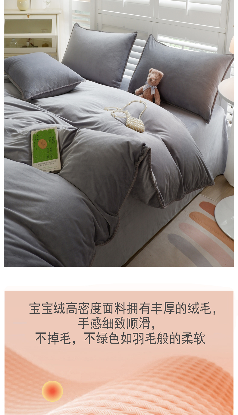 当前位置: 91家纺网 > 商品网购 > 床品套件 > 四件套 > 其它四件套 > 啊雅家居 2026新款贝壳边宝宝绒四件套 贝壳银灰
