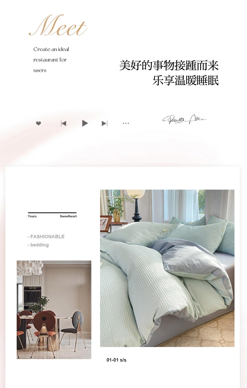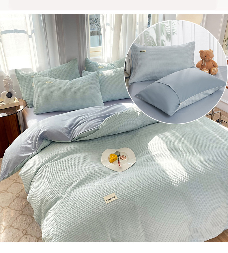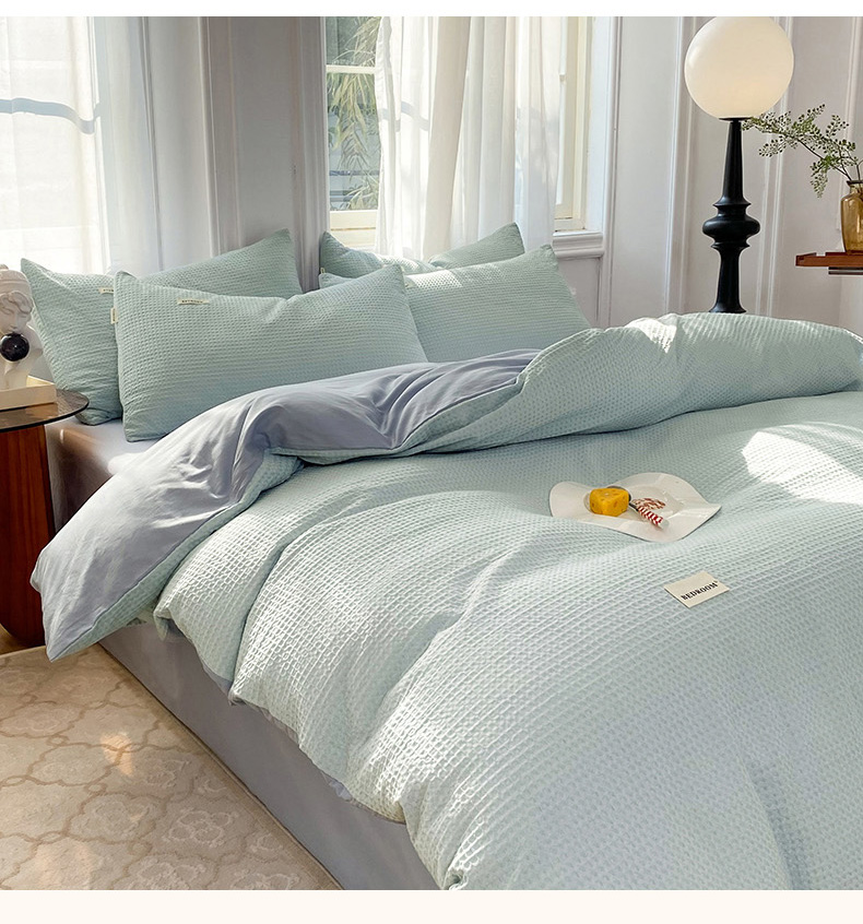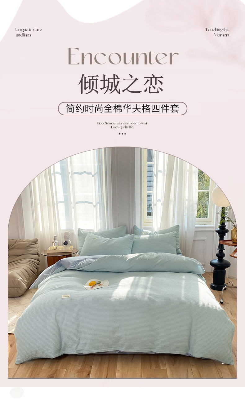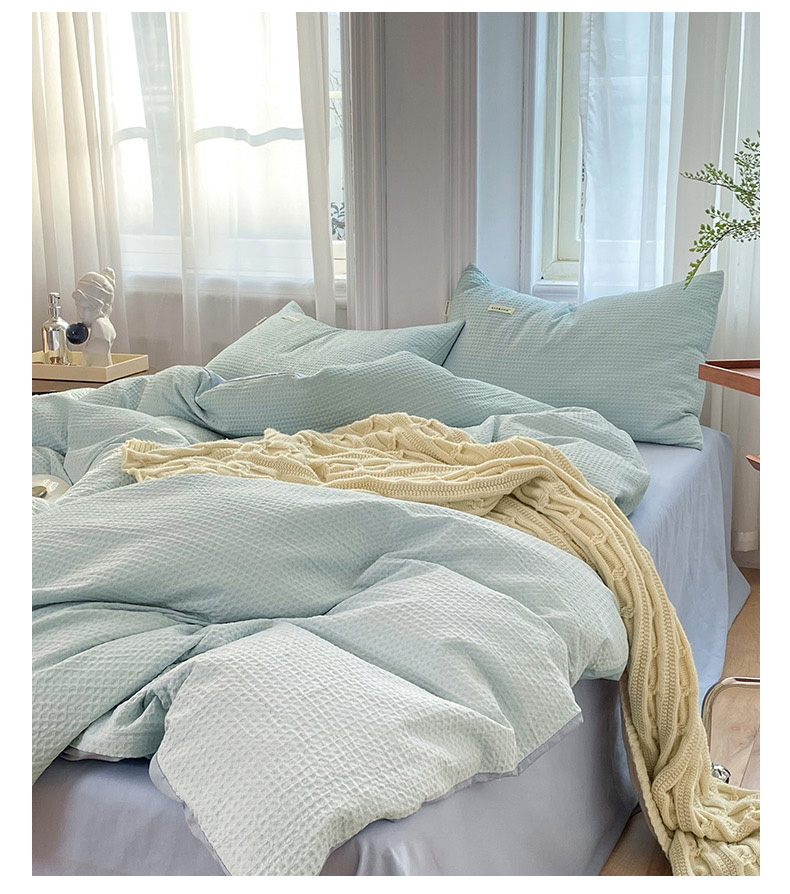 当前位置: 91家纺网 > 商品网购 > 床品套件 > 四件套 > 全棉普通四件套 > 眠博士 2026新款简约时尚全棉华夫格四件套(提供买家秀)简约款 雾蓝色