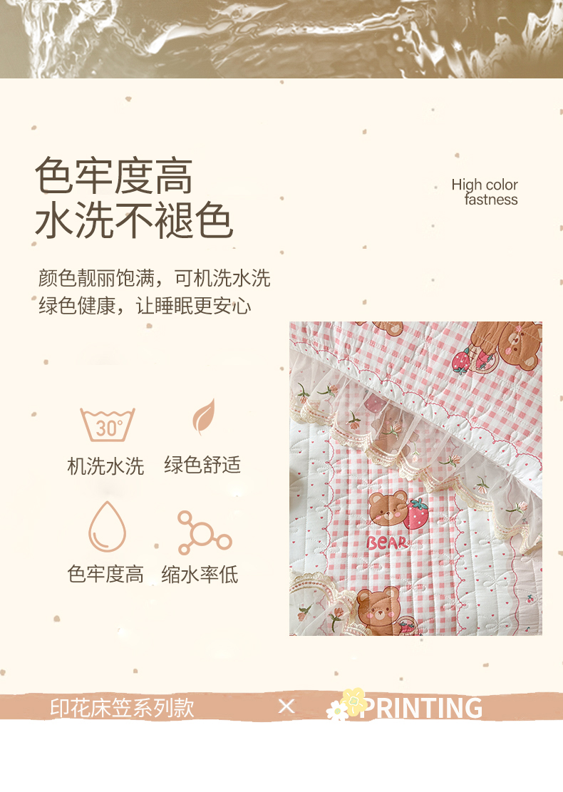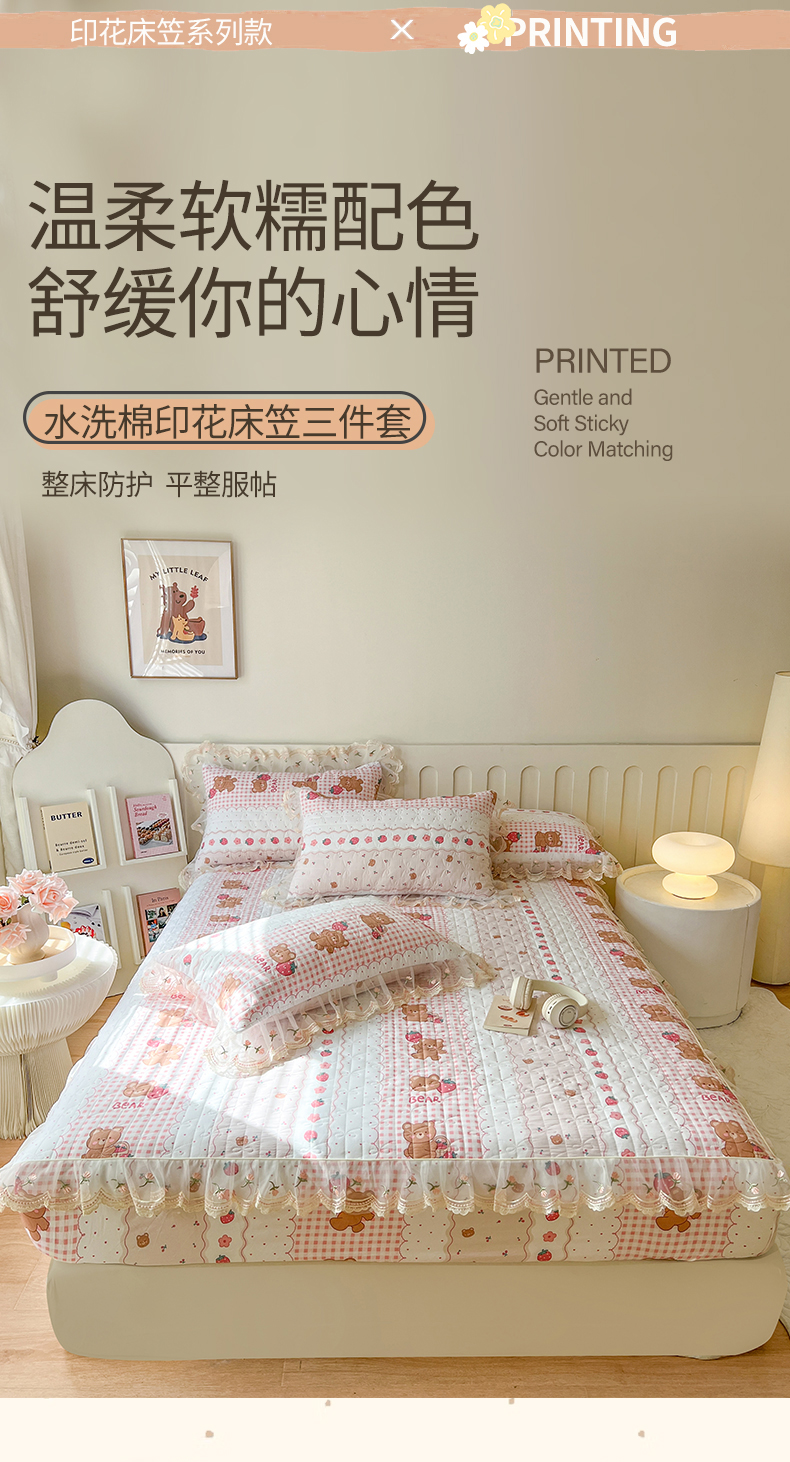• 91家纺网 家纺一手货源 找家纺 网红馆(ck家纺) 2026新款水洗棉印花床笠三件套 花花熊